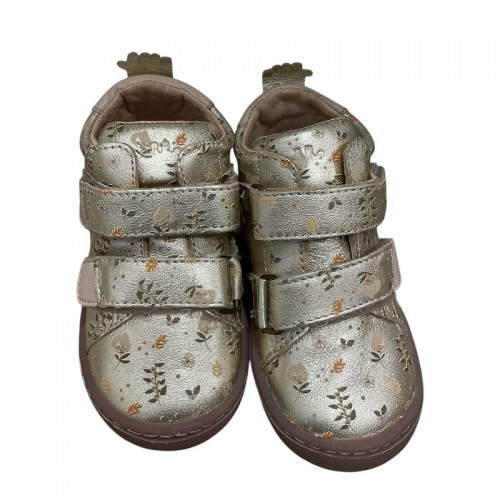 Ces premières chaussures Deboo velcro fleurie dorée Easy Peasy sont idéales pour l'apprentissage de la marche de bébé à l'extérieur de la maison.