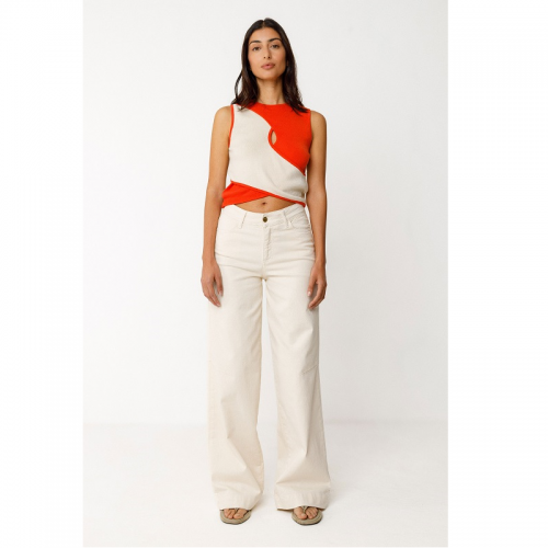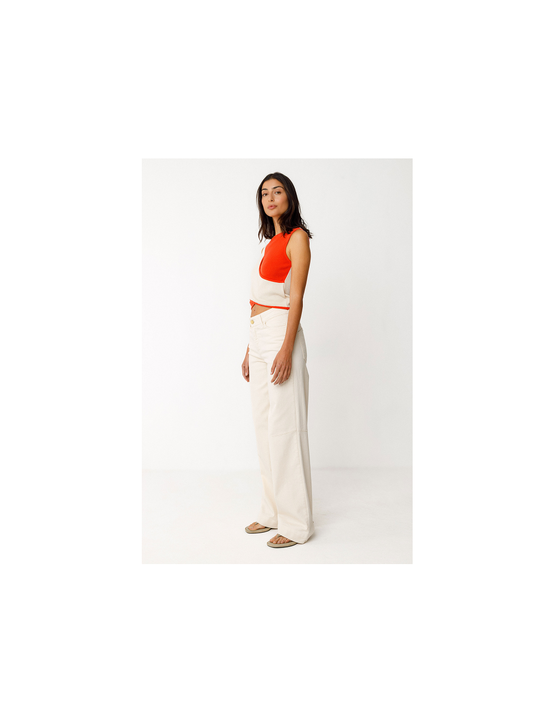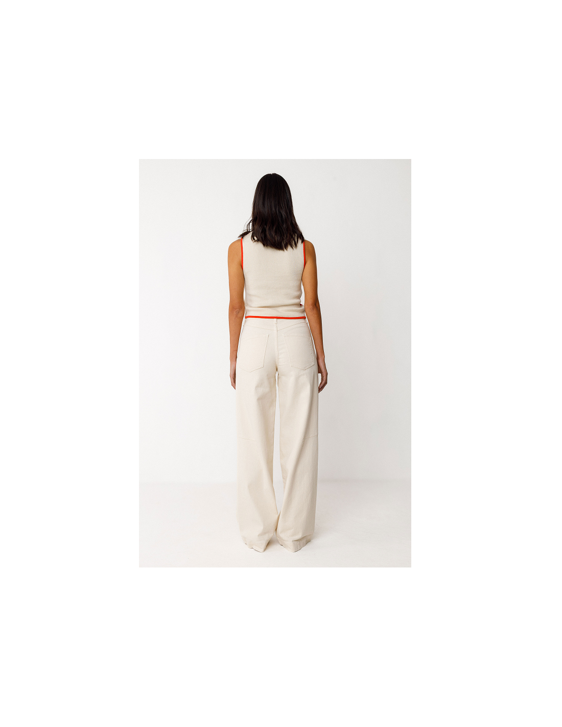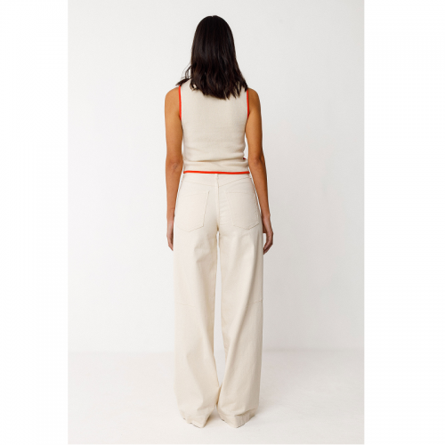 PANTALON SIMONE LARGE EN COTON BIO ECRU - SKFK