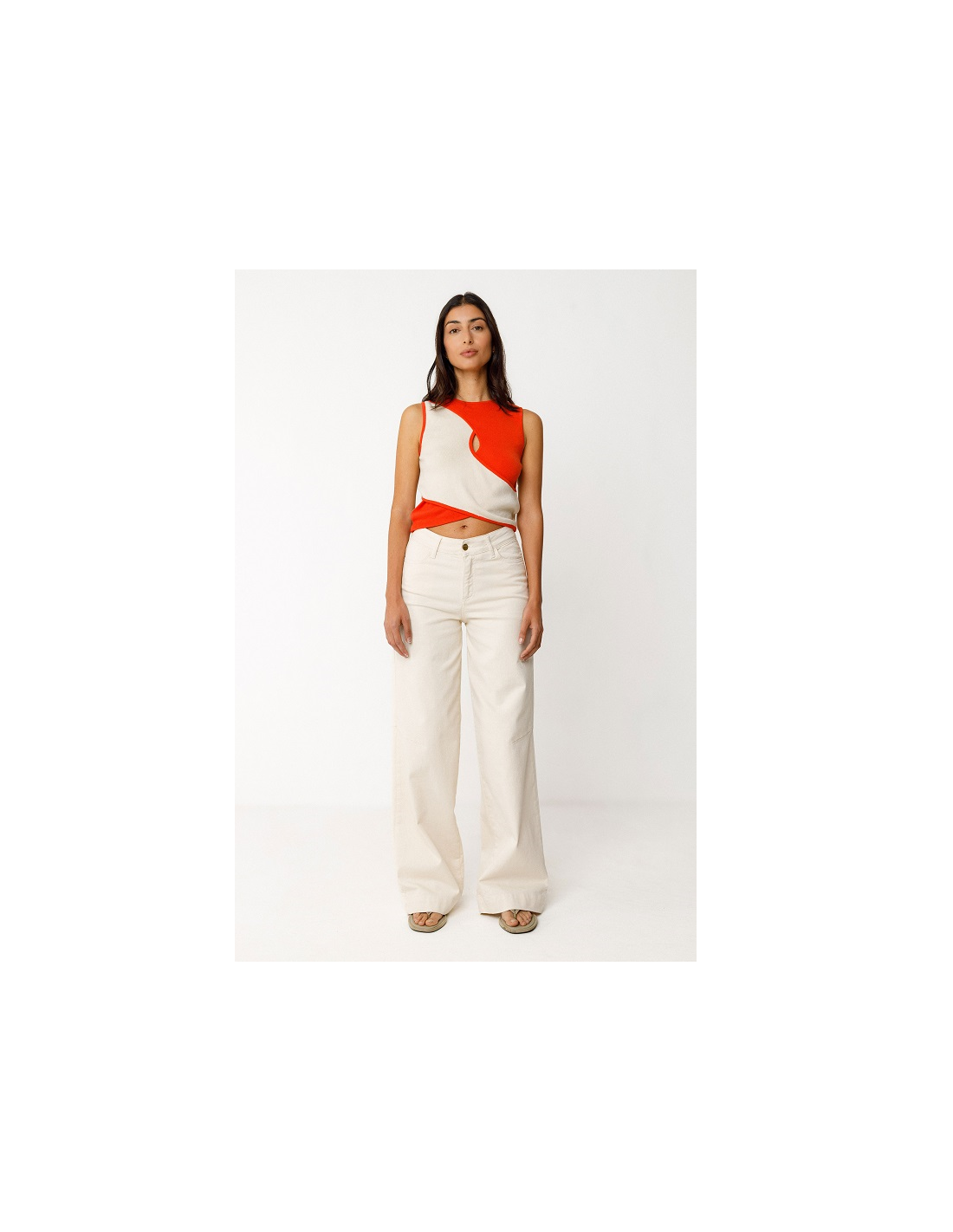 Le pantalon Simone large en coton bio écru SKFK est un pantalon que vous aurez plaisir à porter. Sa coupe large est tendance.