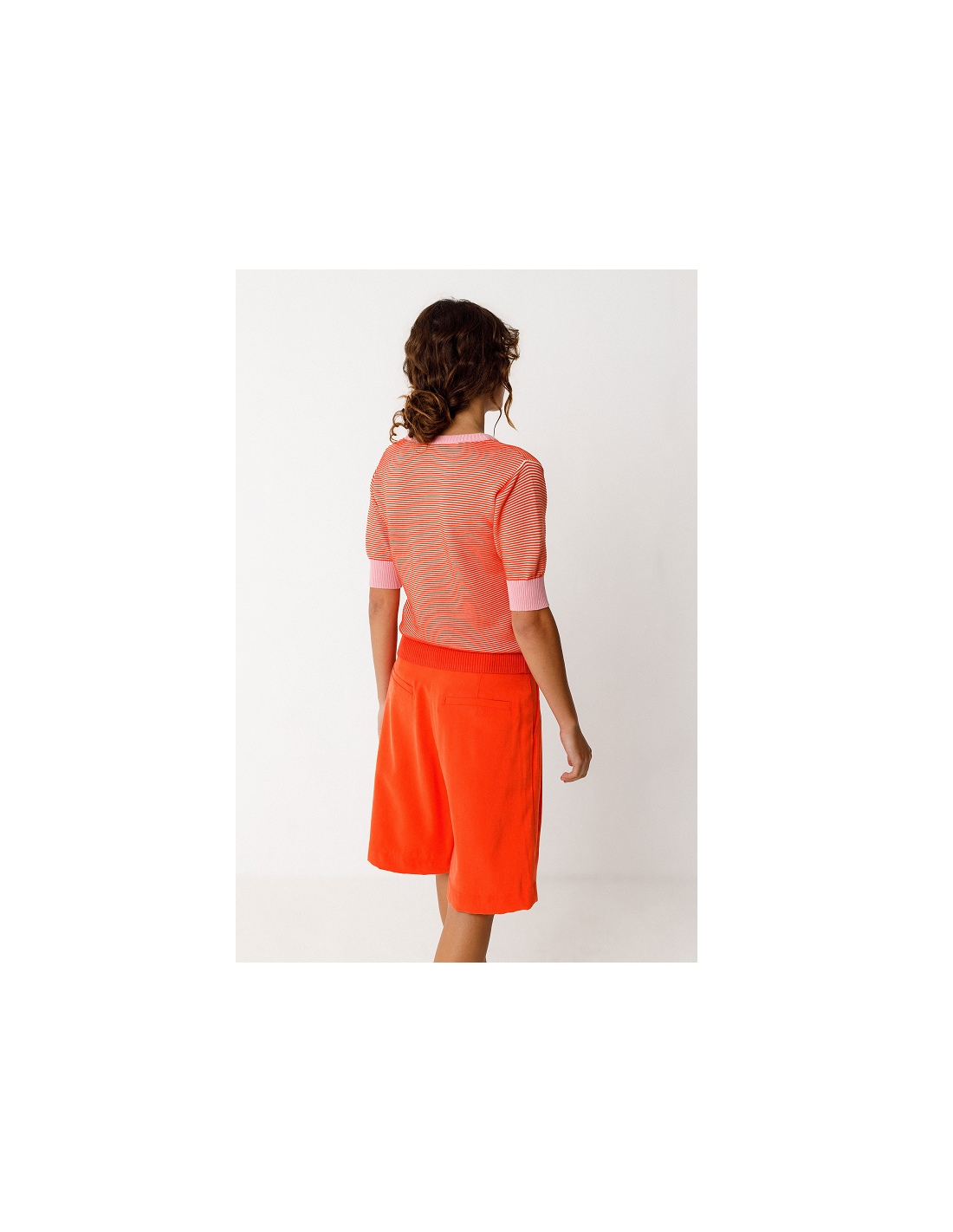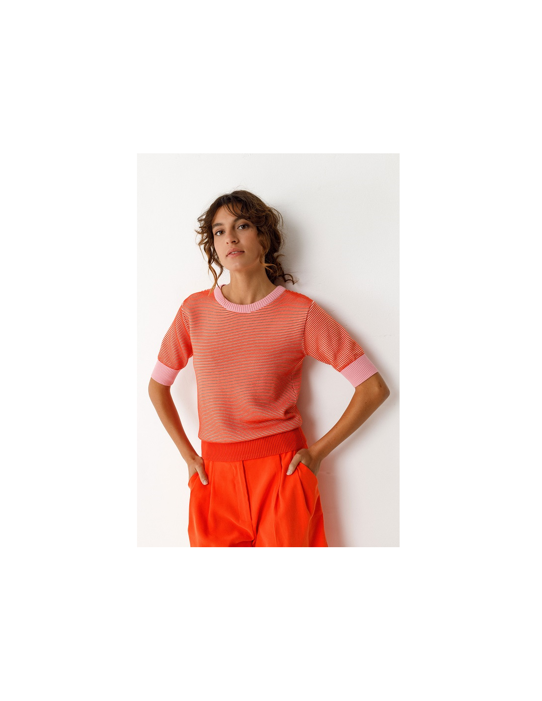 Le pull muike manches courtes coton bio rayé orange SKFK est un pull léger pour l'été, agréable à porter, avec une coupe stylé, de belles finitions et de belles couleurs !