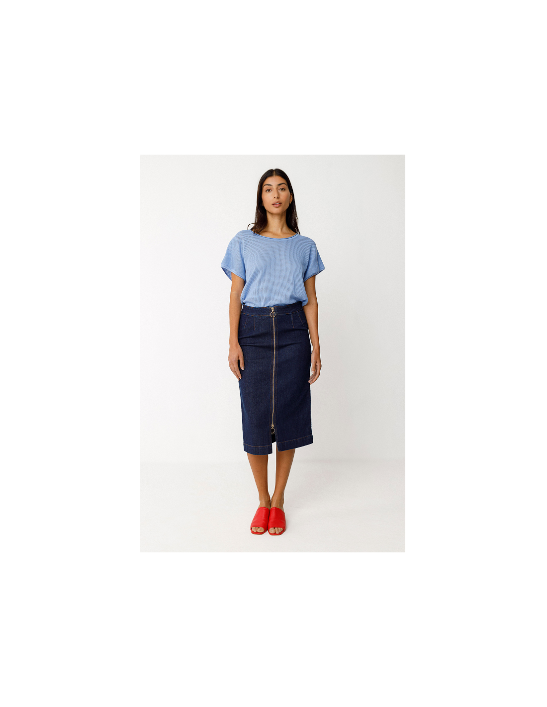 Le pull en tricot de coton bio Zelia bleu SKFK est un pull manches courtes très élégant et agréable à porter ! Coup de coeur pour ce produit !