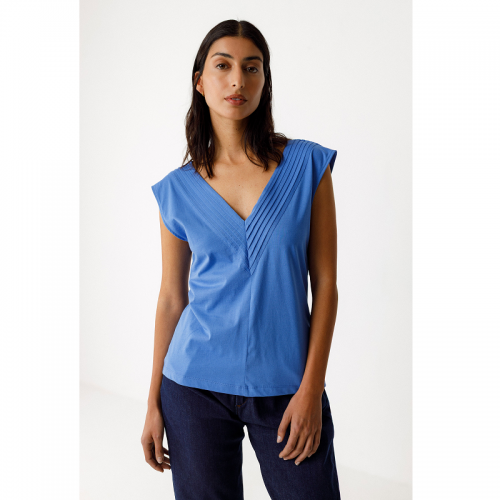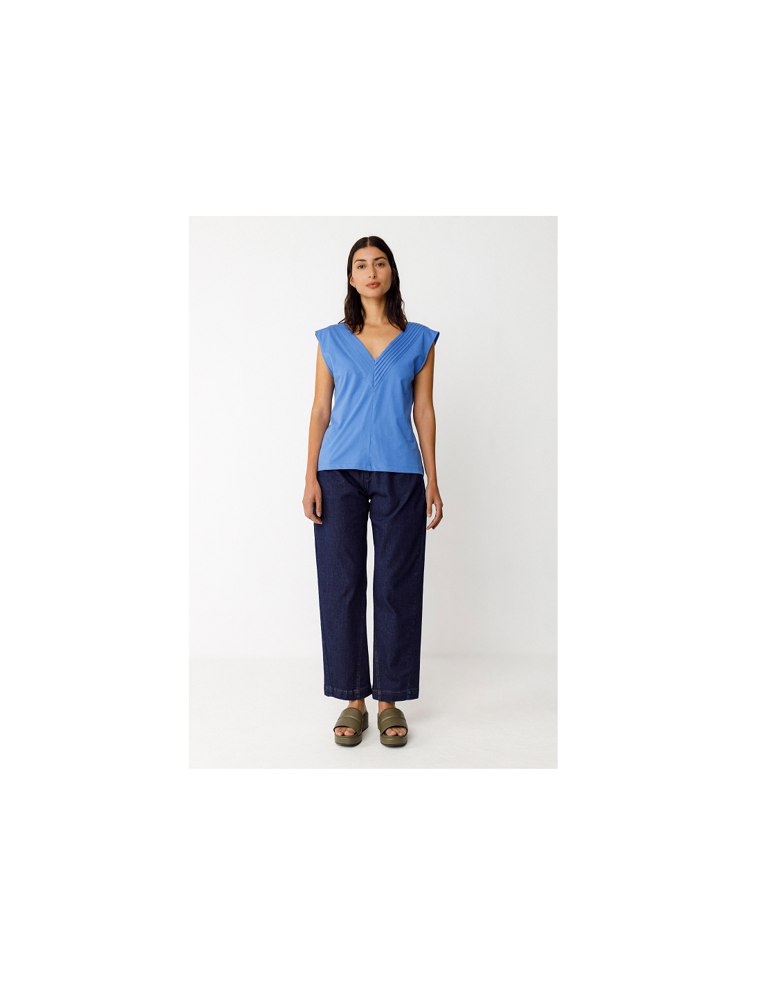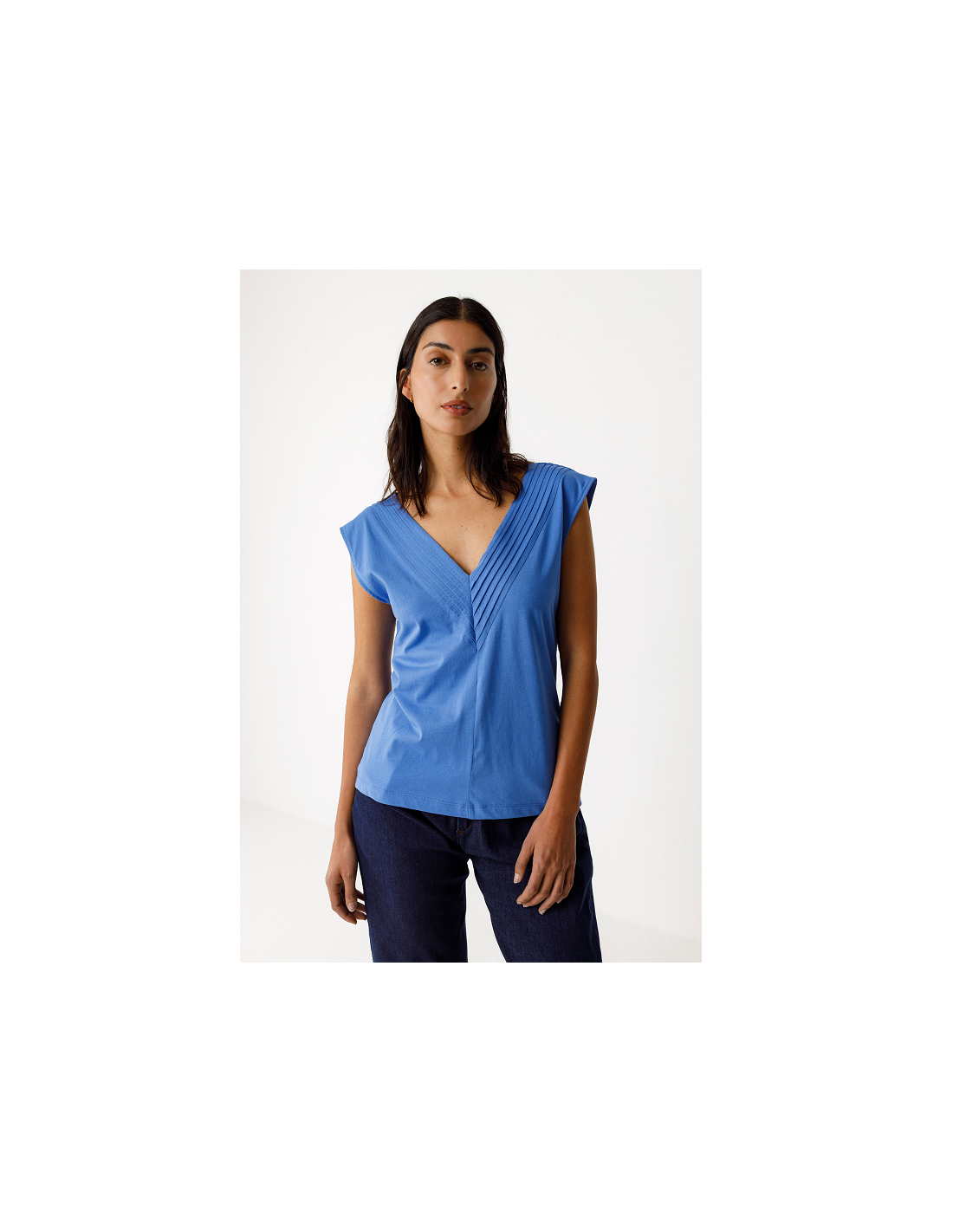 - Détails du produit : débardeur, col V devant , détails plissés à l'encolure.