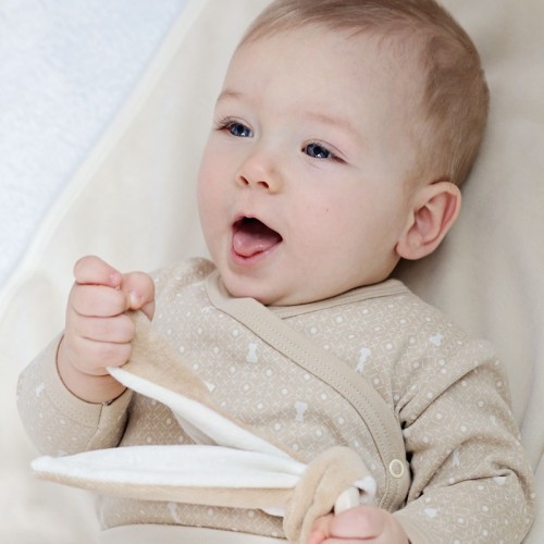Les oreilles de lapin froissées émettent des sons amusants lorsque bébé les touche, parfait pour l'apprentissage sensoriel.