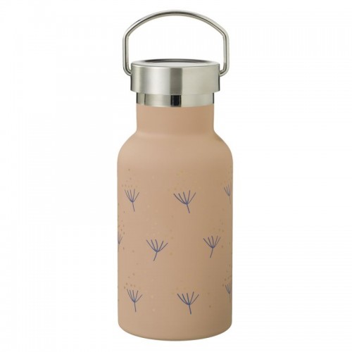 Une gourde pour enfants, en acier inoxydable avec un joli imprimé pissenlit.