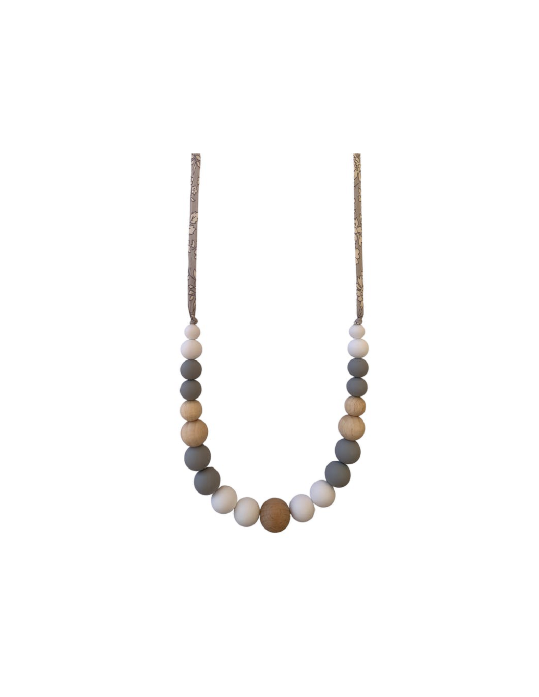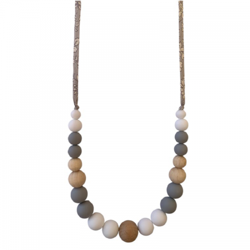 Collier d'allaitement ou de portage Scandi, perles bois et silicone alimentaire, cordon liberty.