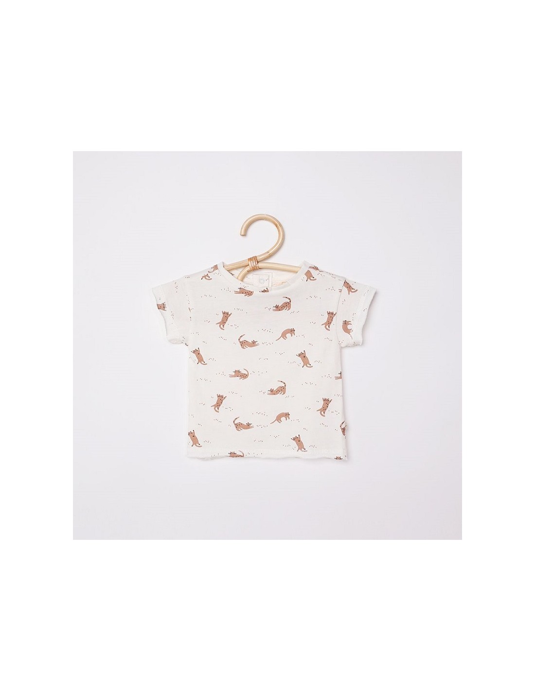 T shirt manches courtes en coton biologique, modèle Mae, imprimé Chats.