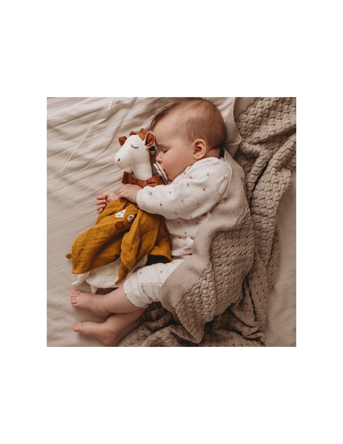 Ce doudou girafe tout doux, avec sa tête de girafe et son corps souple grâce à ses 2 épaisseurs de gaze de coton biologique, peut devenir un compagnon indispensable pour votre bébé.