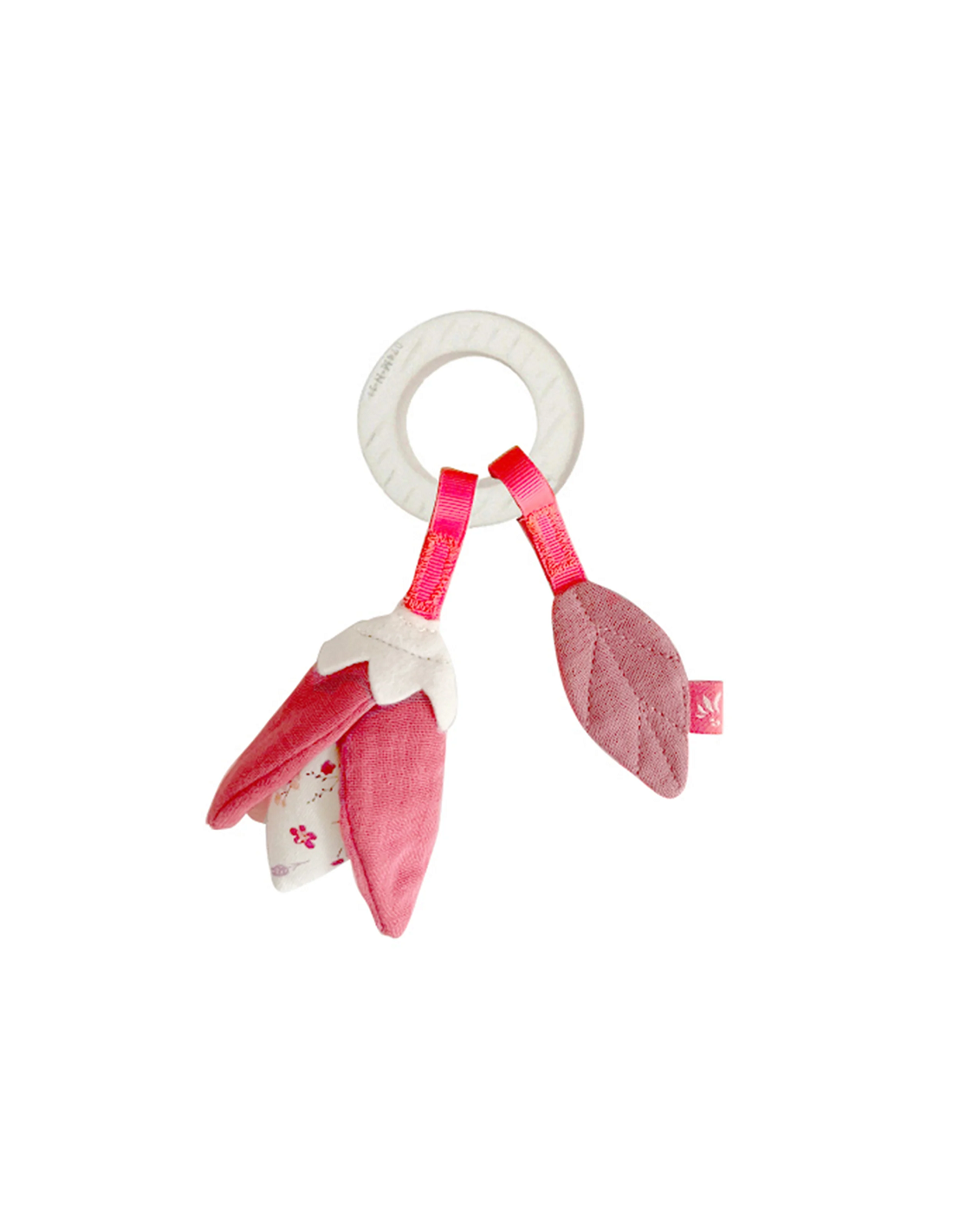 Les 2 mini éléments fleurs amovibles permettront de transformer l'anneau en jeu d'éveil favorisant la préhension.
