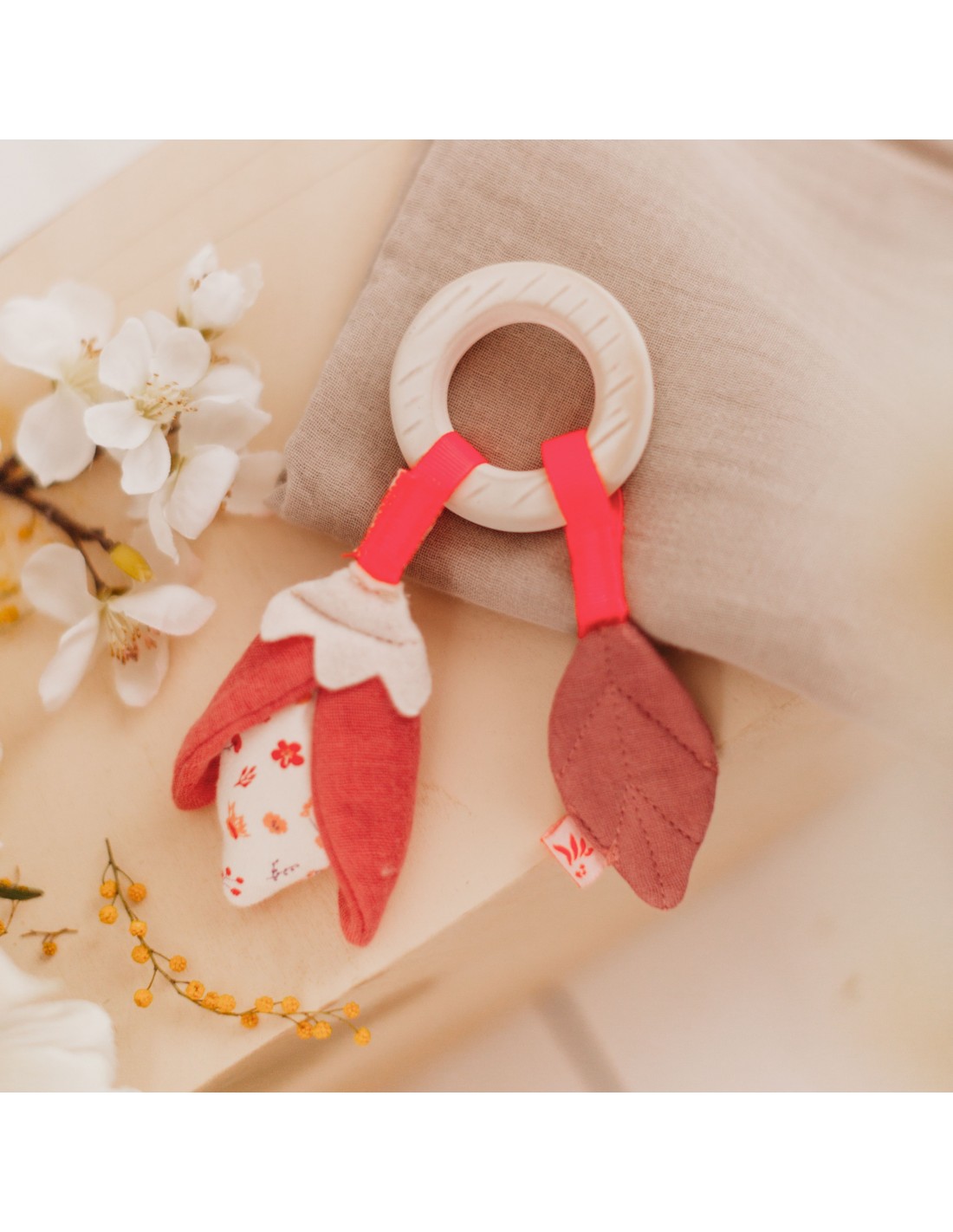 Cet anneau de dentition Fleurs Kikadu en caoutchouc naturel soulage votre enfant lors de ses poussées dentaires.