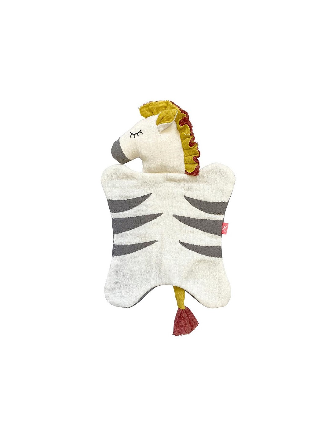 Ce doudou plat Zèbre en coton biologique Kikadu a envie d'être caliné par bébé !