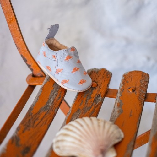 Les chaussons Blumoo crabes fond bleu Easy Peasy sont spécialement conçu pour les nouveaux nés et les bébés.