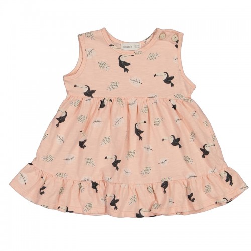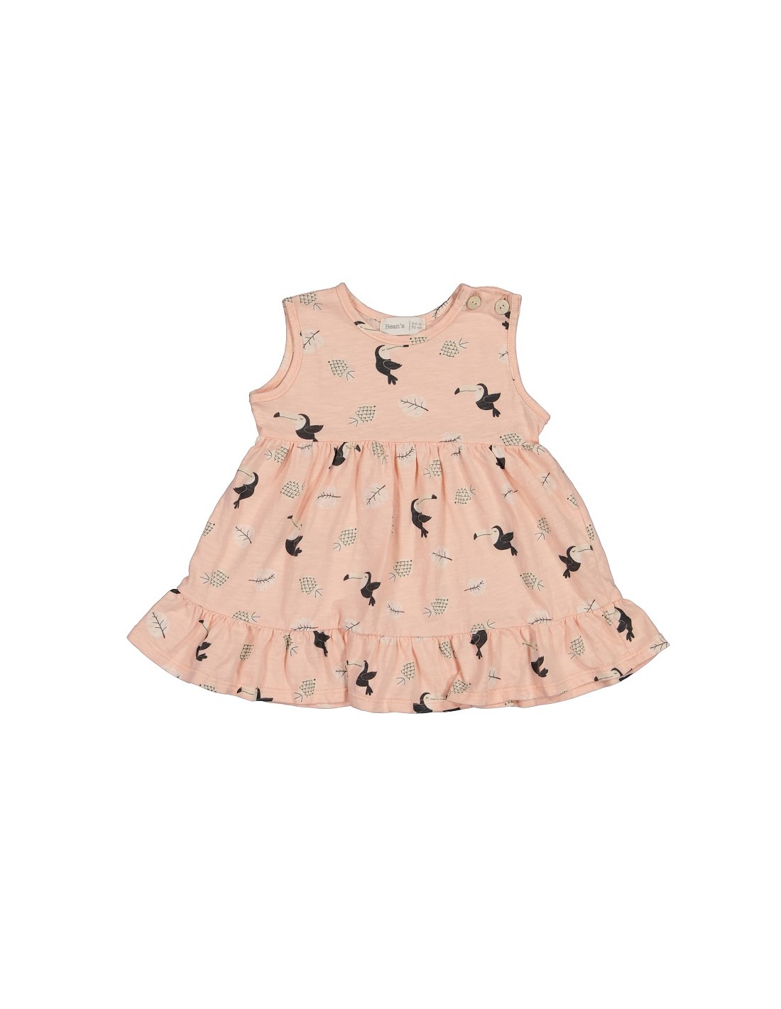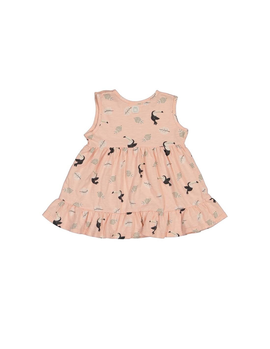 Cette robe débardeur rose imprimée toucans Bean's Barcelona est idéale pour habiller les petites filles cet été.