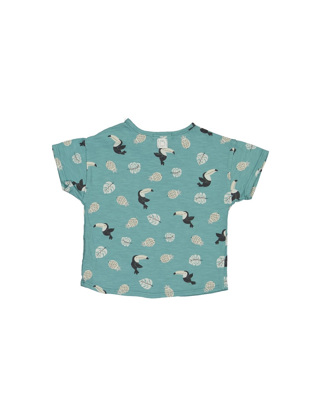T SHIRT MANCHES COURTES VERT MOTIFS TOUCAN - BEANS BARCELONA