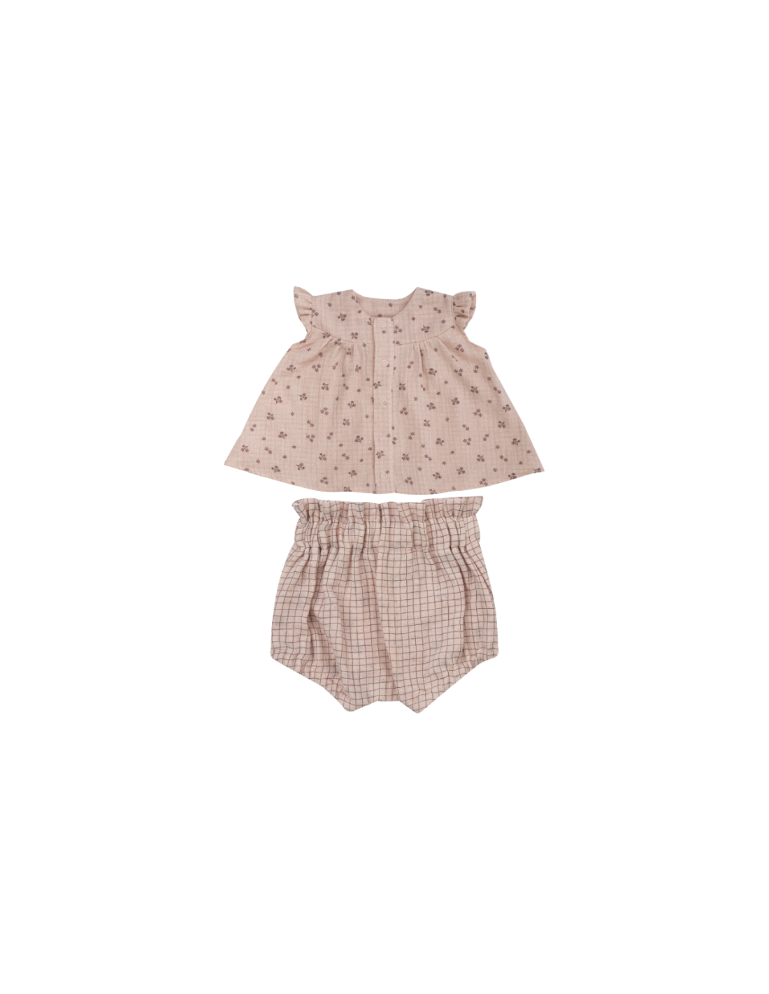 ENSEMBLE BLOUSE ET BLOOMER ROSE FLEURI - WOOLY ORGANIC