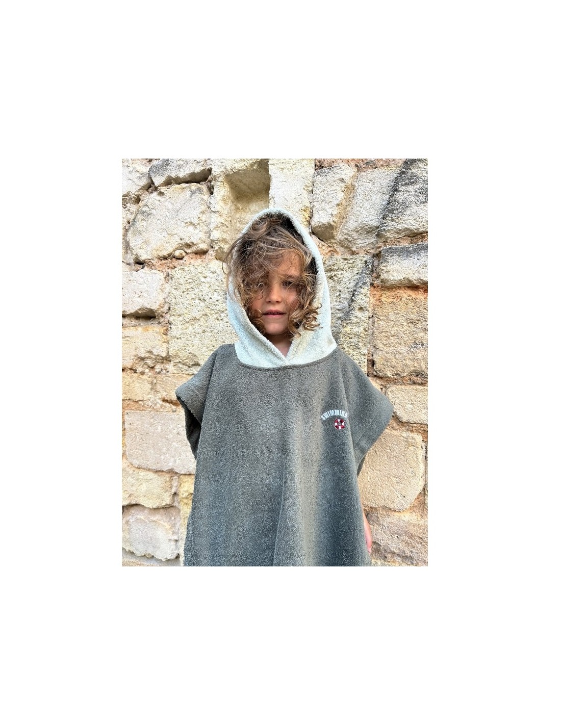 Le poncho de bain kaki Poule Party est l'incontournable pour la sortie de bain ou de piscine.