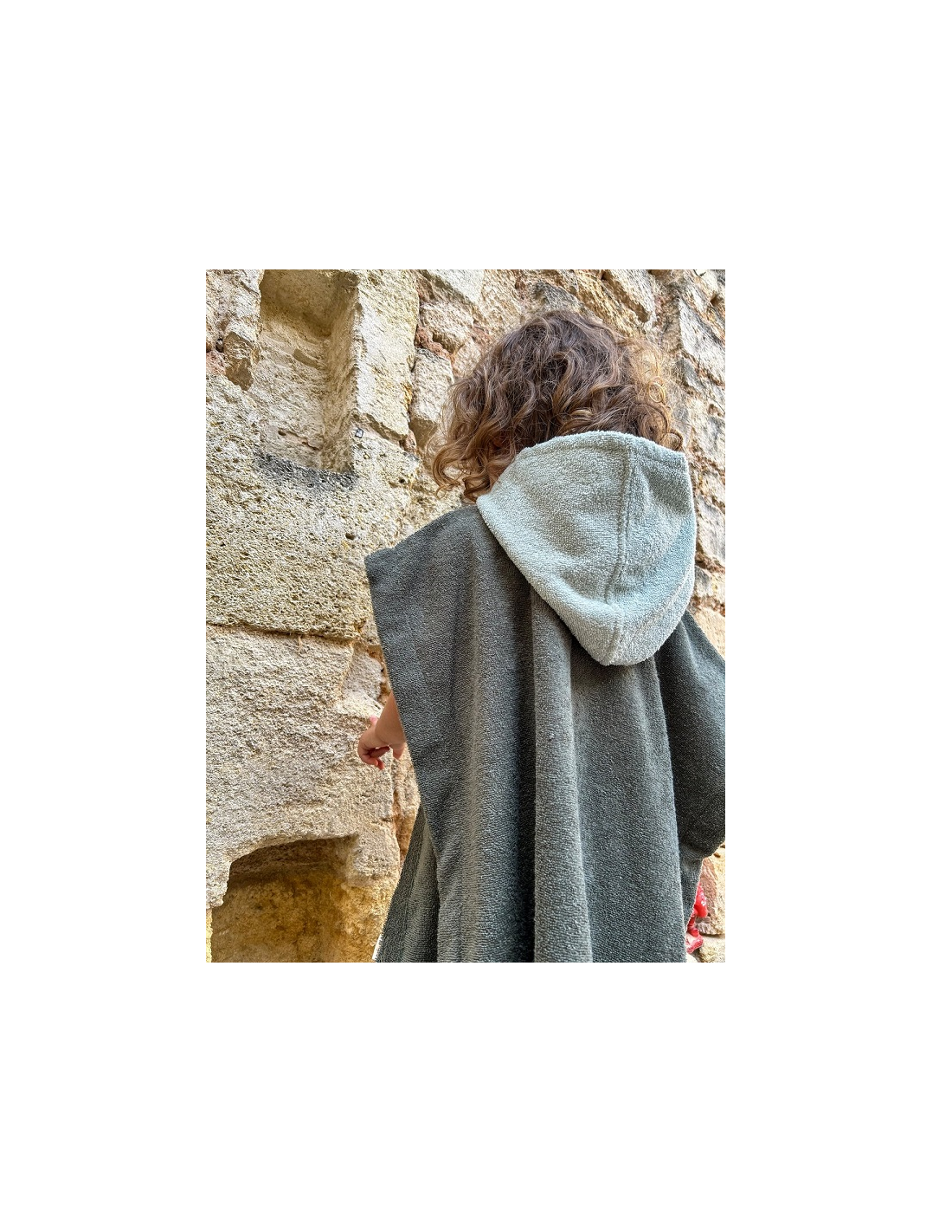 Le poncho de bain kaki Poule Party ne passe pas inaperçu.