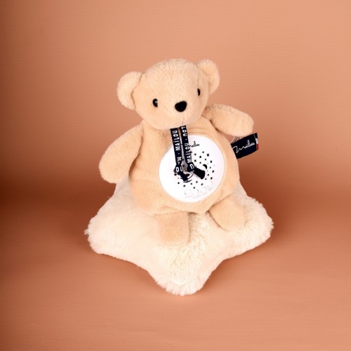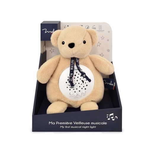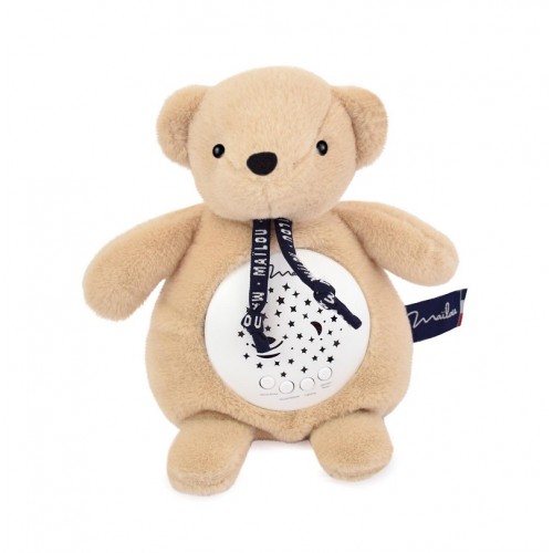 La Veilleuse Dorlotin musicale projecteur d'étoiles Ours beige Mailou tradition est peluche lumineuse de 16 cm qui diffuse 7 couleurs relaxantes, 10 berceuses et 5 bruits blancs.