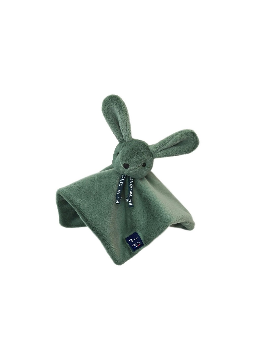 Le Doudou Dorlotin lapin Plat vert sauge Mailou Tradition est une véritable invitation à la tendresse.