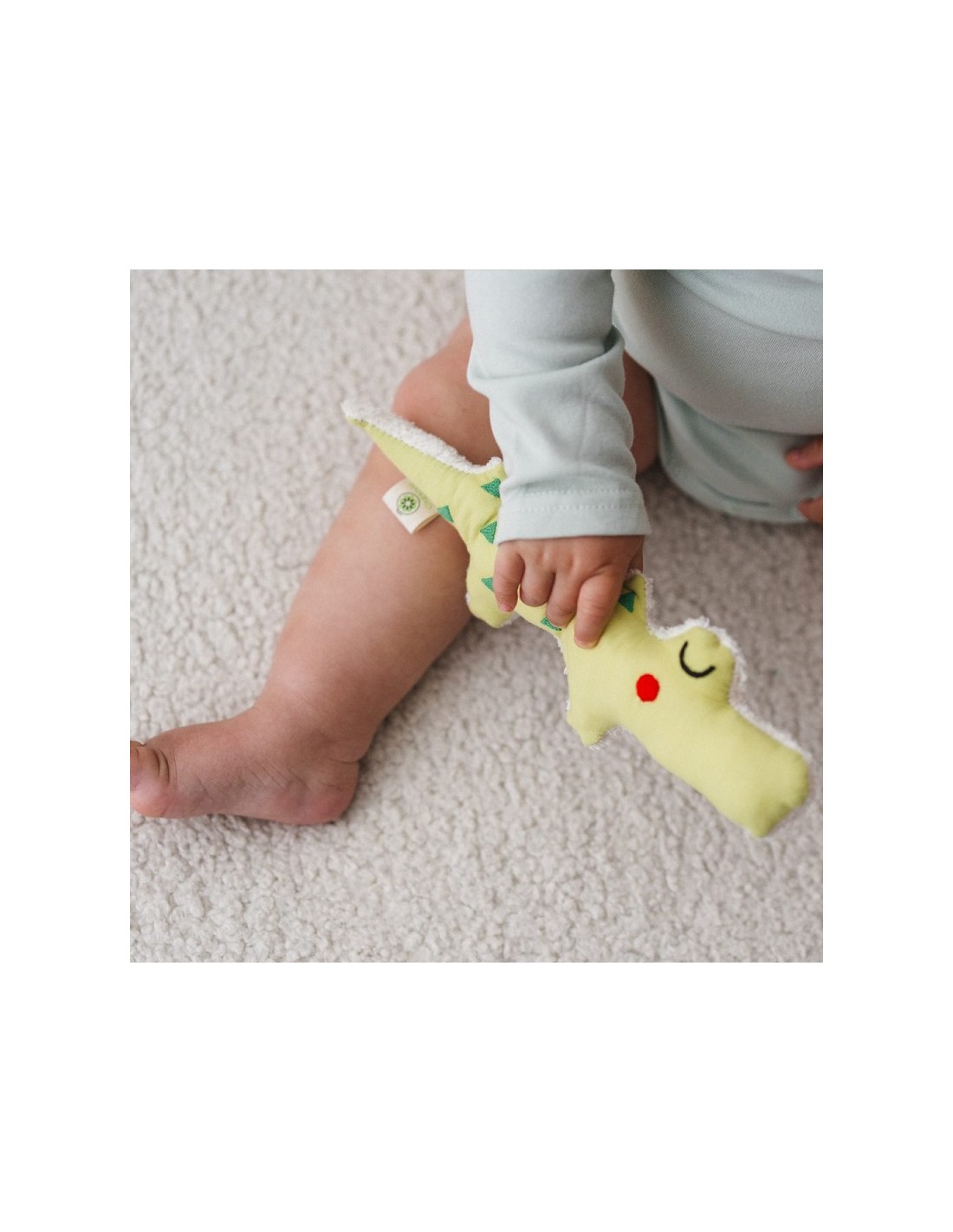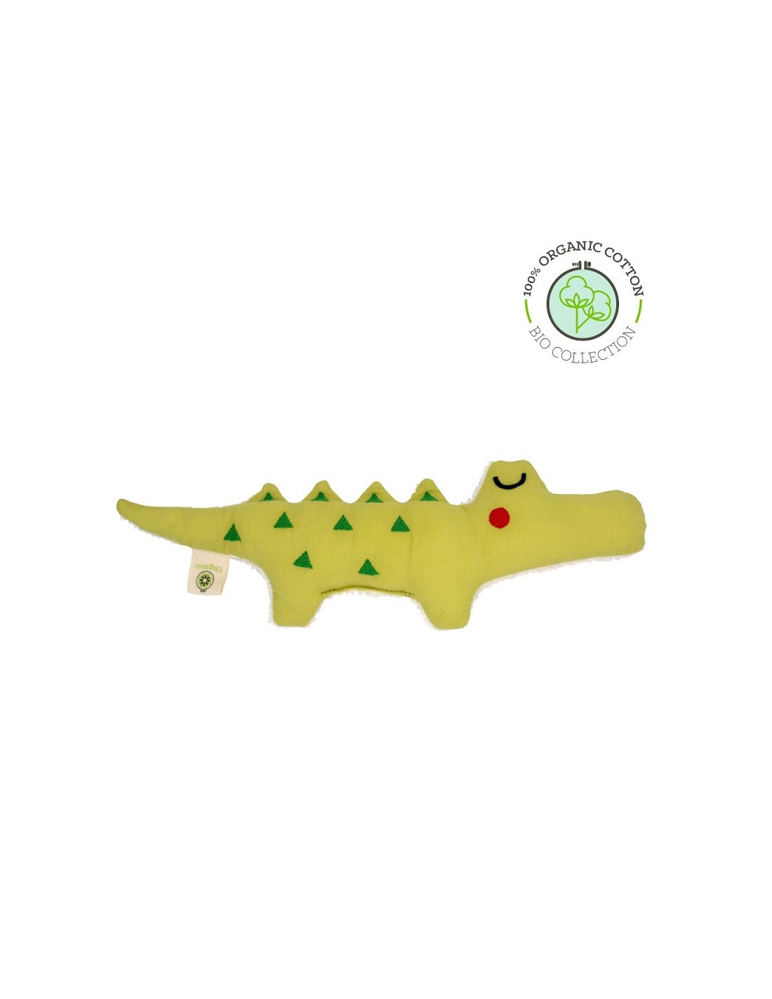 Hochet Crocodile en coton Bio Apunt, est rembourré en fibre de maïs.