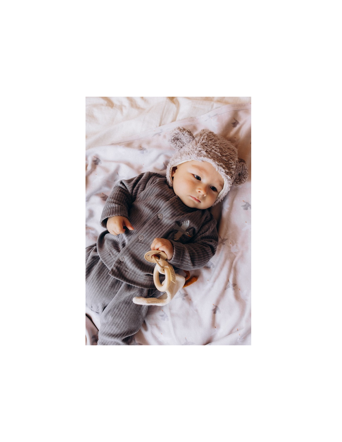 Idéal pour l'automne et l'hiver, sa texture velours lui confère une touche luxueuse et douce, un toucher que votre bébé adorera.