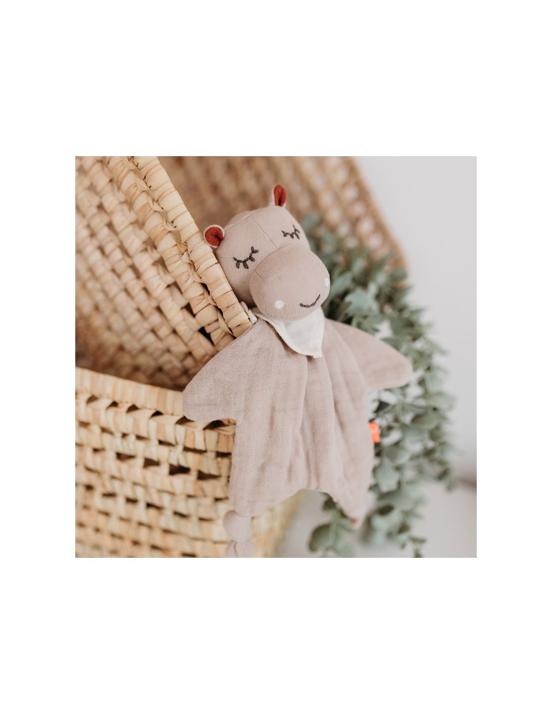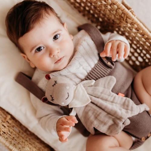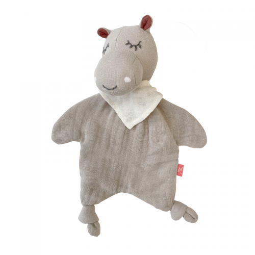 Le doudou plat lange hippopotame en coton biologique Kikadu permettra de rassurer et d'apaiser un bébé.