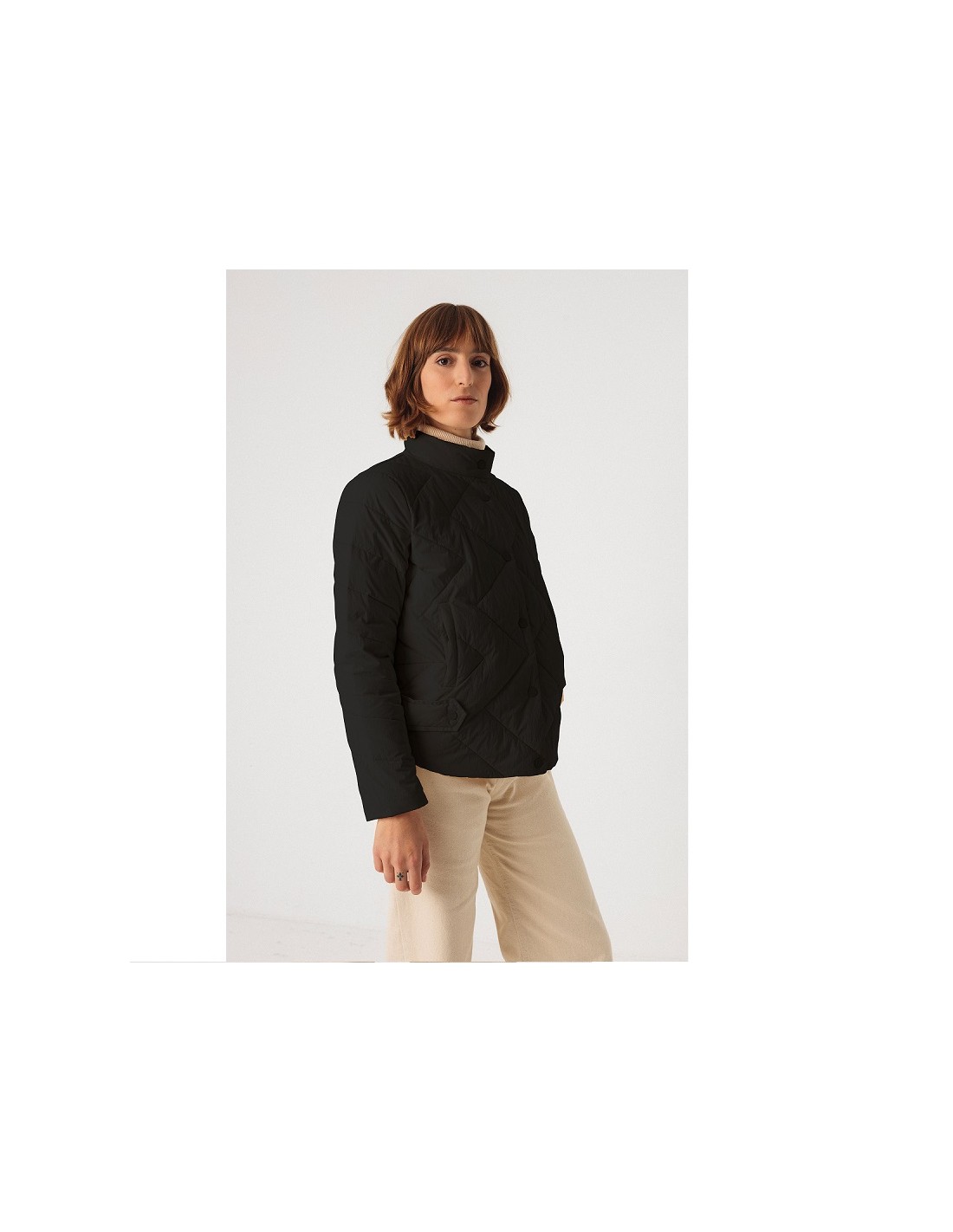 La veste doudoune courte EIRA noire nylon recyclé SKFK est une veste courte matelassée col montant, chaude et légère !