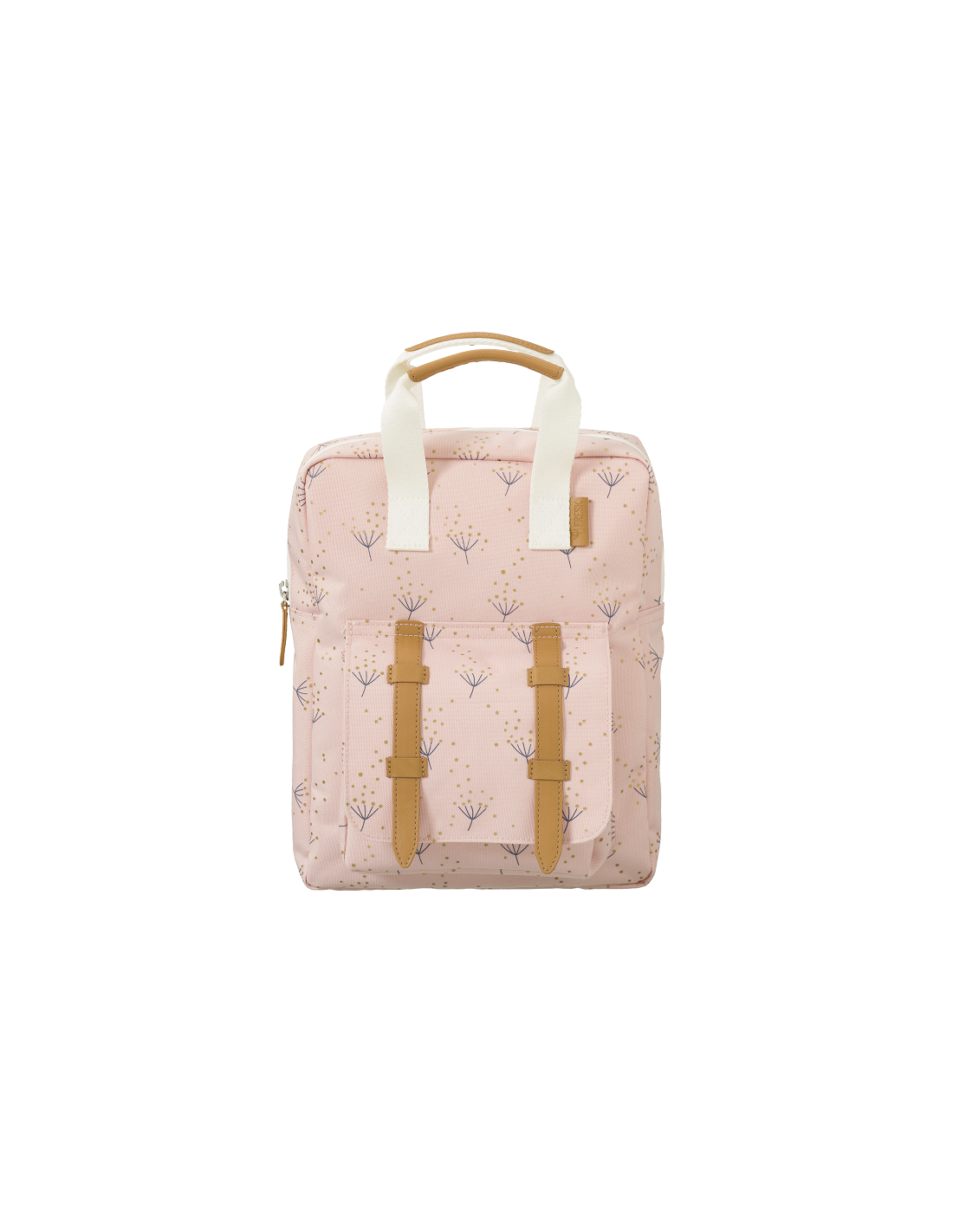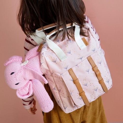 Petit sac à dos thème pissenlit / rose, en PET de bouteilles plastiques recyclées.