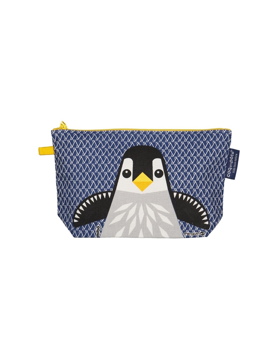 Trousse zippée à soufflet en coton biologique, motif pingouin.