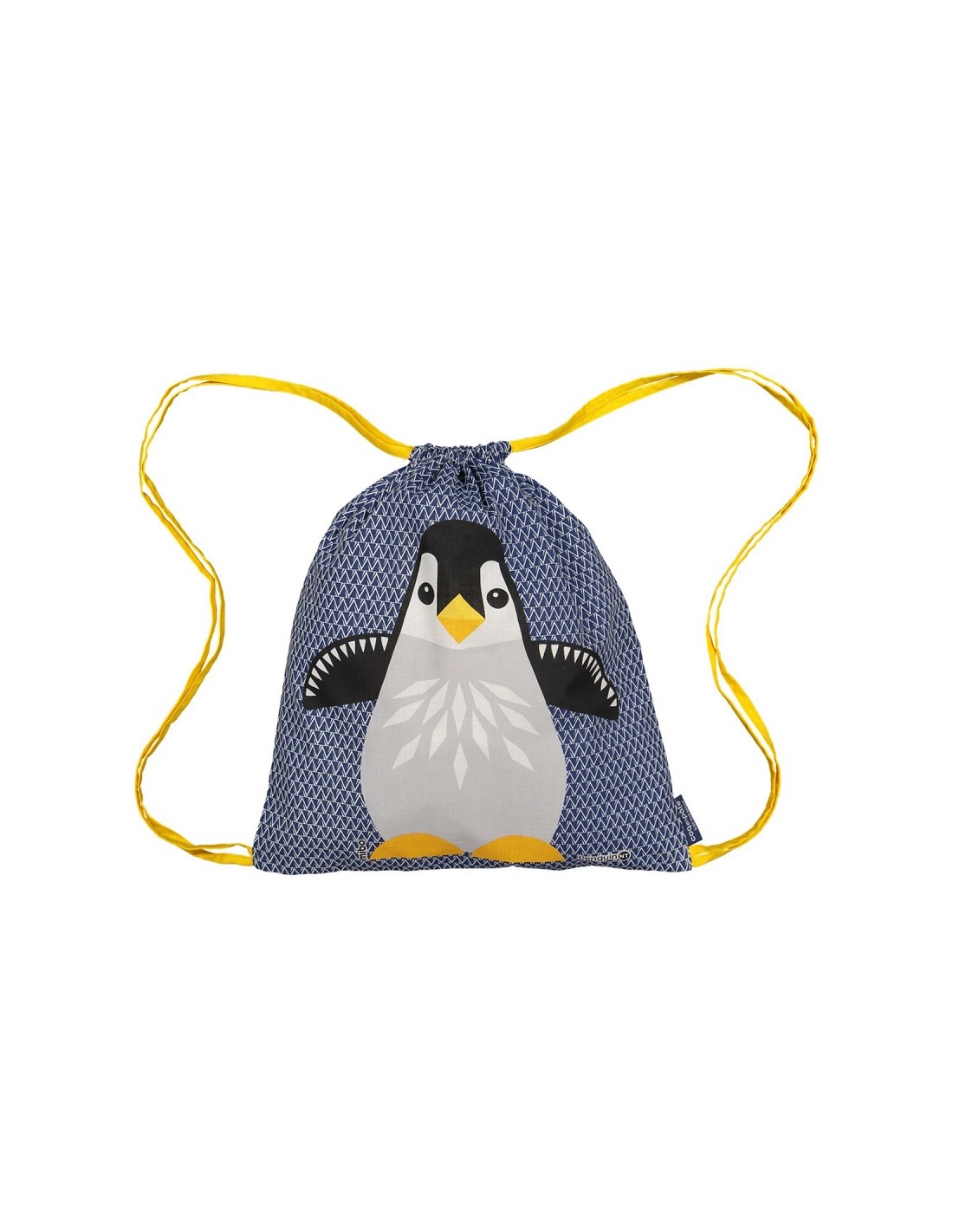 Sac d'activités à coulisse en coton biologique, motif pingouin.