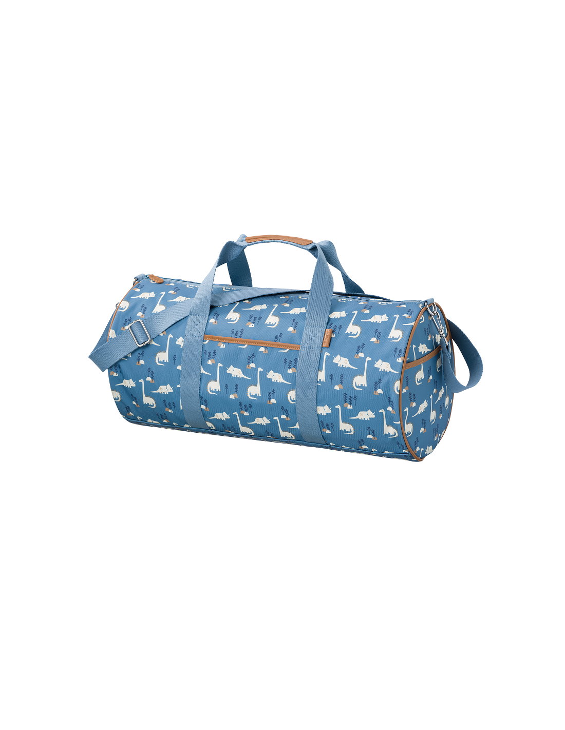 Le grand sac WE dinosaures bleu Fresk en PET de bouteille plastique recyclées est parfait pour emmener ses précieuses affaires lors d'un week-end ou d'un voyage. Très pratique avec sa fermeture par un zip, ses 2 anses et sa bandoulière.