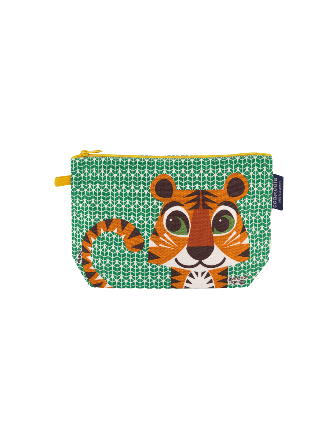 La trousse à crayons Tigre vert Coq en pâte est 100% confectionnée en coton biologique, imprimé recto verso.