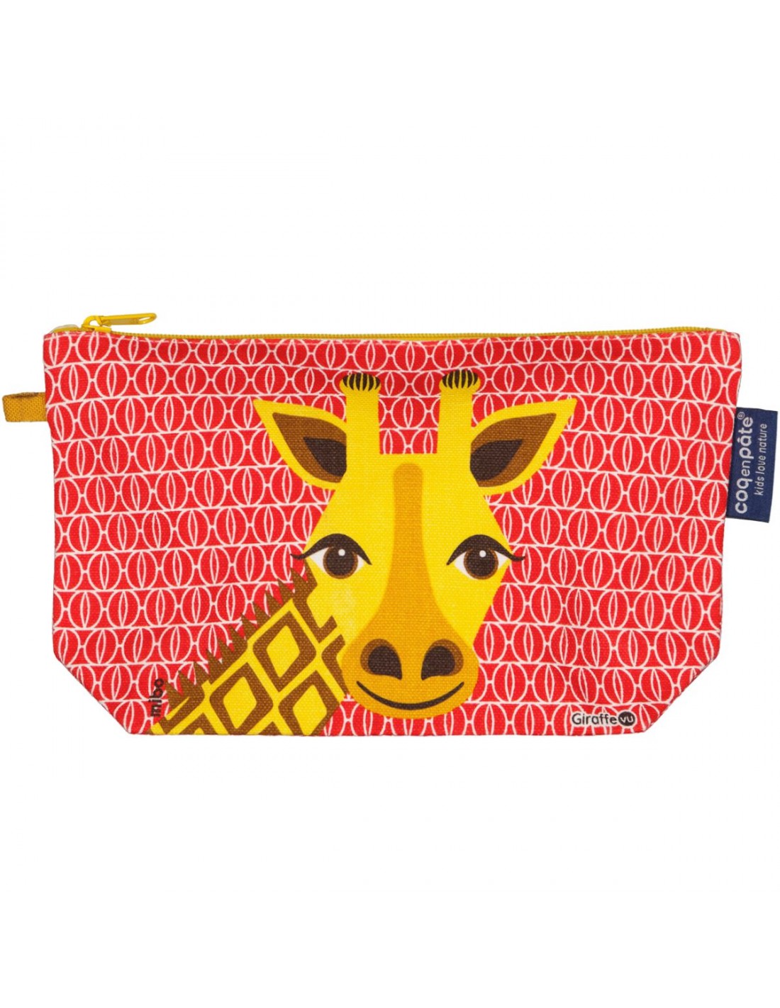 La trousse à crayons Girafe rouge Coq en pâte est 100% confectionnée en coton biologique, imprimé recto verso.