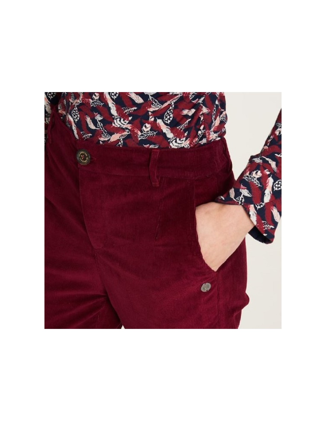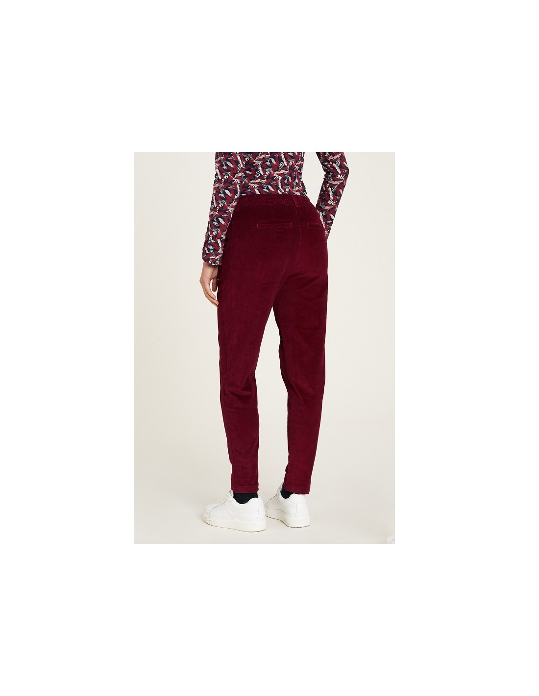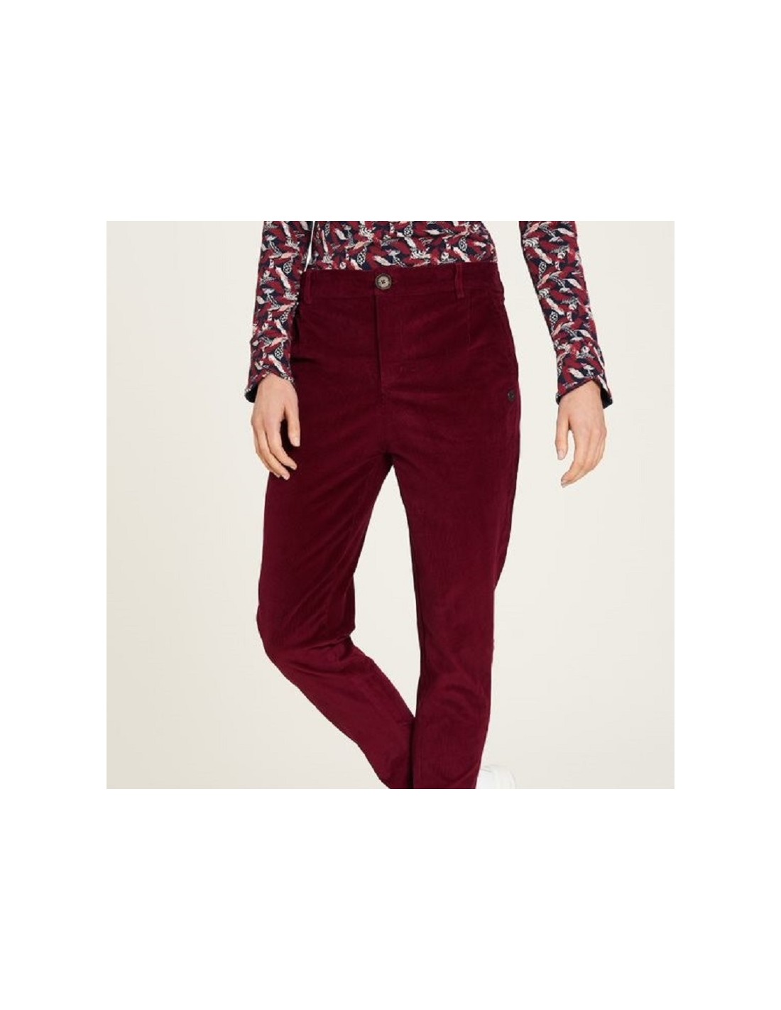 Ce pantalon en velours côtelé de coton biologique et de polyester recyclé, dans un coloris bordeaux, sera un vrai bonheur pour cet hiver!