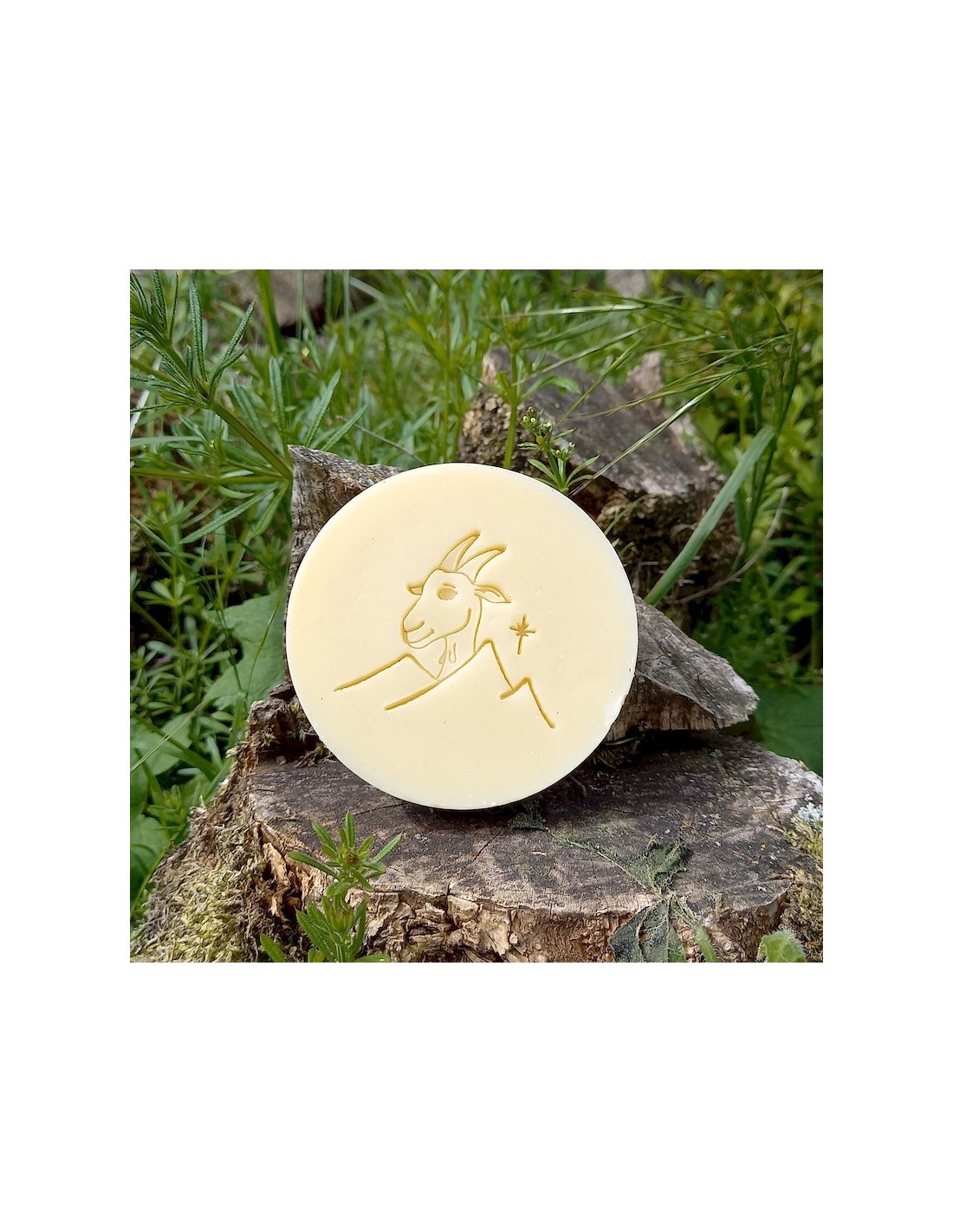 Savon artisanal au bon lait de chèvre, fabriqué par Kathy qui élève ses chèvres en Ardèche verte. Ce savon "nature patûre" est sans odeur, même pas celle du bouc !