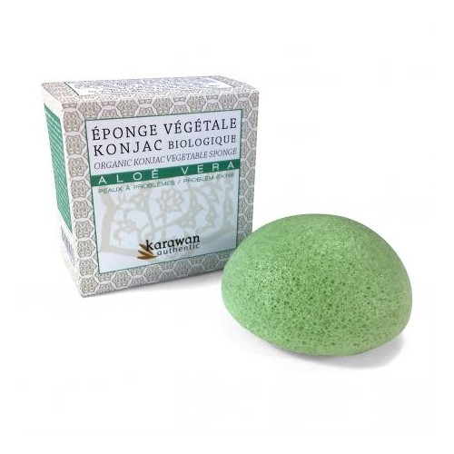 Eponge végétal en konjac bio enrichie à l'aloe vera pour les peaux à problèmes (100% végétal).