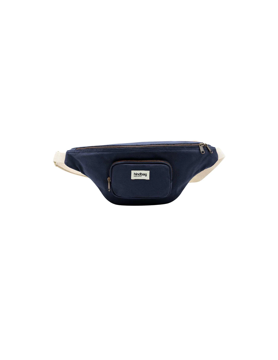 Le sac banane sofia XL en coton bio navy- Hindbag est la banane qui remplace votre sac à main encombrant et vous aurez à porter de main votre téléphone, vos clés, votre portefeuille grâce à ces multiples poches !