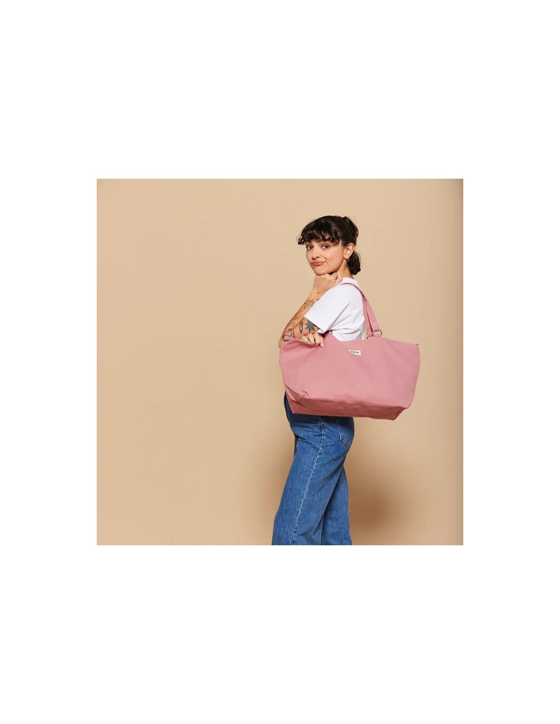 Le sac cabas raphaelle coton bio blush - Hindbag est le sac cabas, sac à main idéal ! Sa double fermeture avec bouton aimanté et mousquetons vous permettra de changer de look, du cabas classique à une forme trapèze plus tendance !
