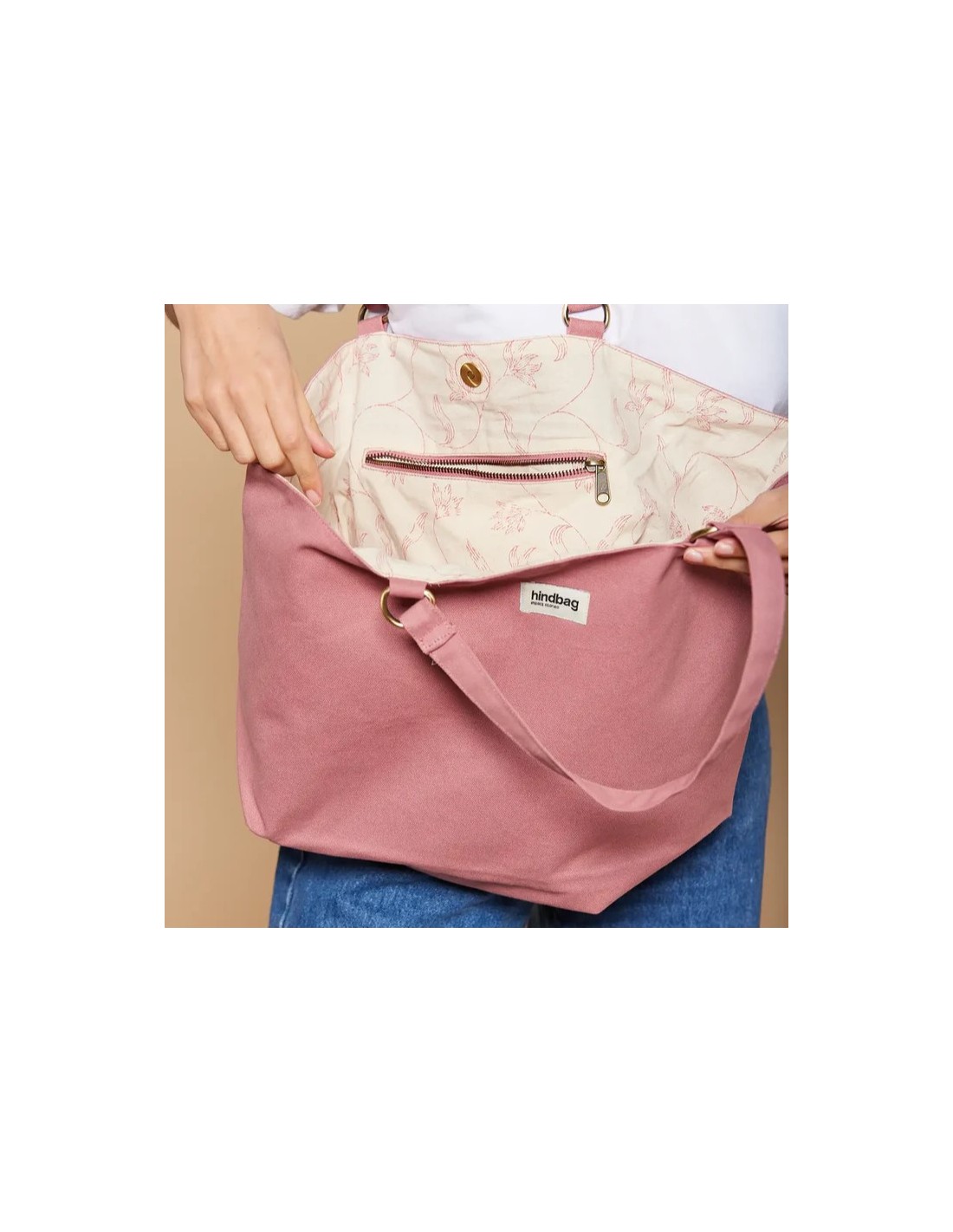 Le sac cabas raphaelle coton bio blush - Hindbag est le sac cabas 2 en 1 qui se transforme par le jeu d'un mousqueton en un clin d'oeil en sac à main ! Vous serez charmés par son élégance, sa capacité, sa poche zippée intérerieure et son motif de doublure !