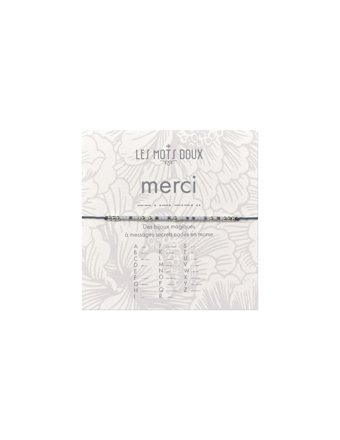 Le bracelet lien code morse merci argent Les Mots Doux est un bijou à message secret ! Les perles traduisent le mot "merci" en code morse ! Ajusté à votre poignet, ce bijou vous portera bonheur ! Le cadeau original et unique !
