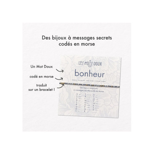 Le bracelet lien code morse bonheur or Les Mots Doux est un bijou à message secret ! Les perles traduisent le mot "bonheur" en code morse ! Ajusté à votre poignet, ce bijou vous portera bonheur ! Le cadeau original et unique !