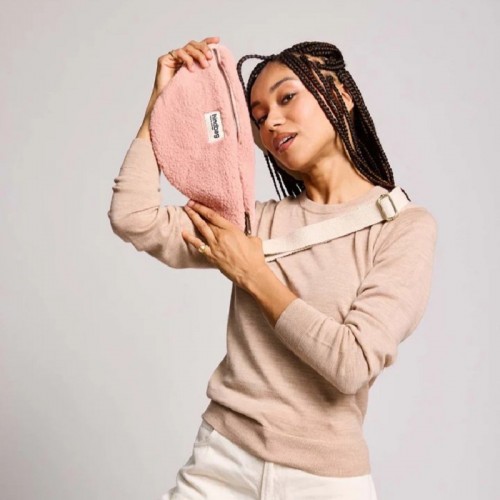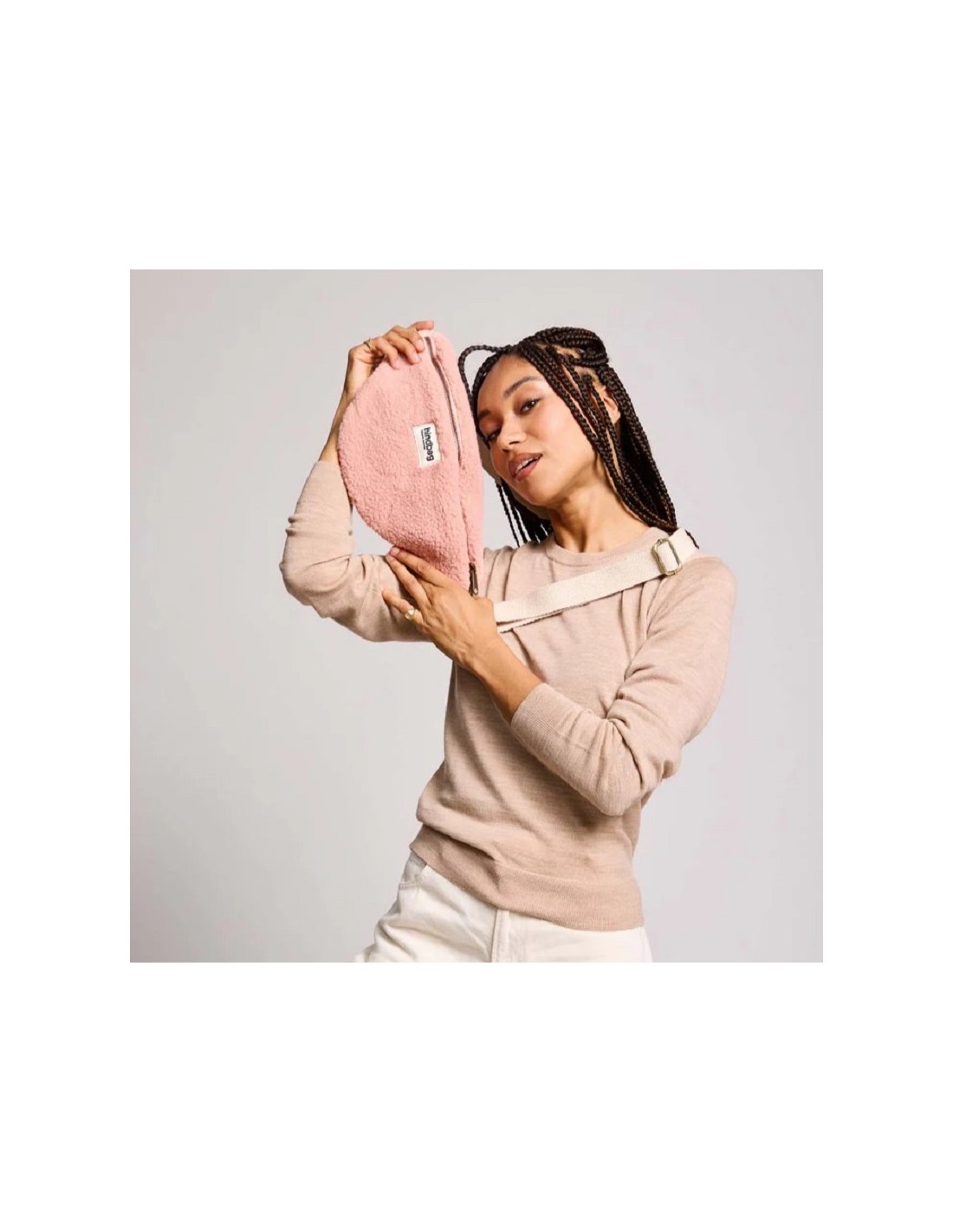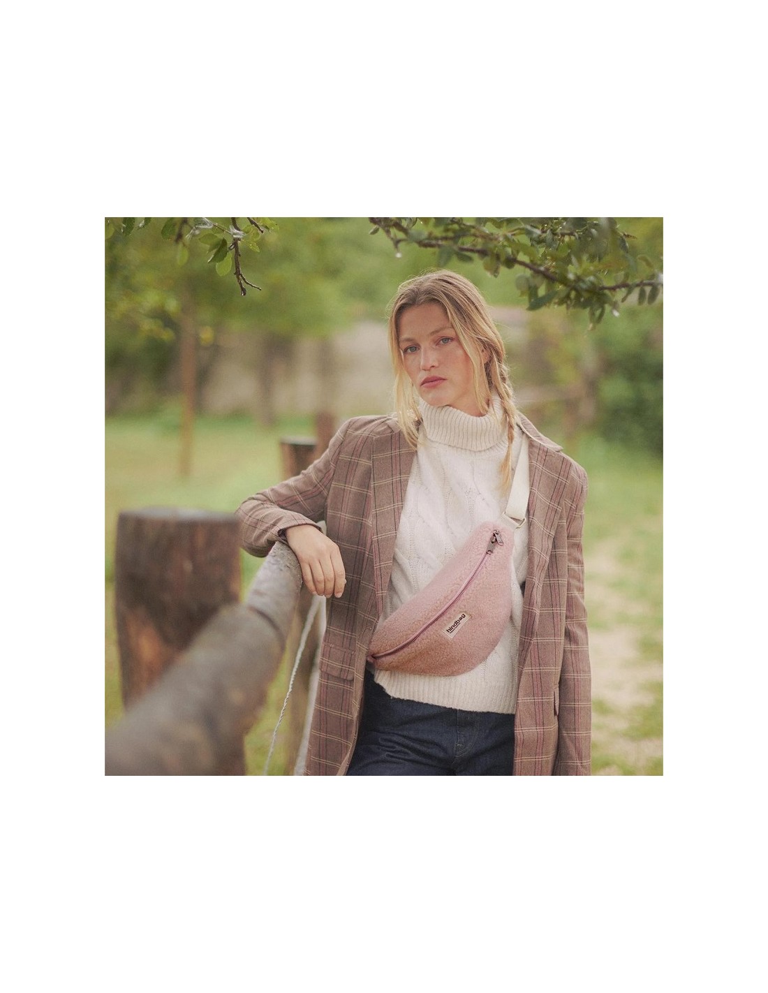 Le sac banane olivia fourrure teddy rose poudré - Hindbag est le sac qui plaira facilement à toute la famille, été comme hiver grâce à sa anse ajustable !