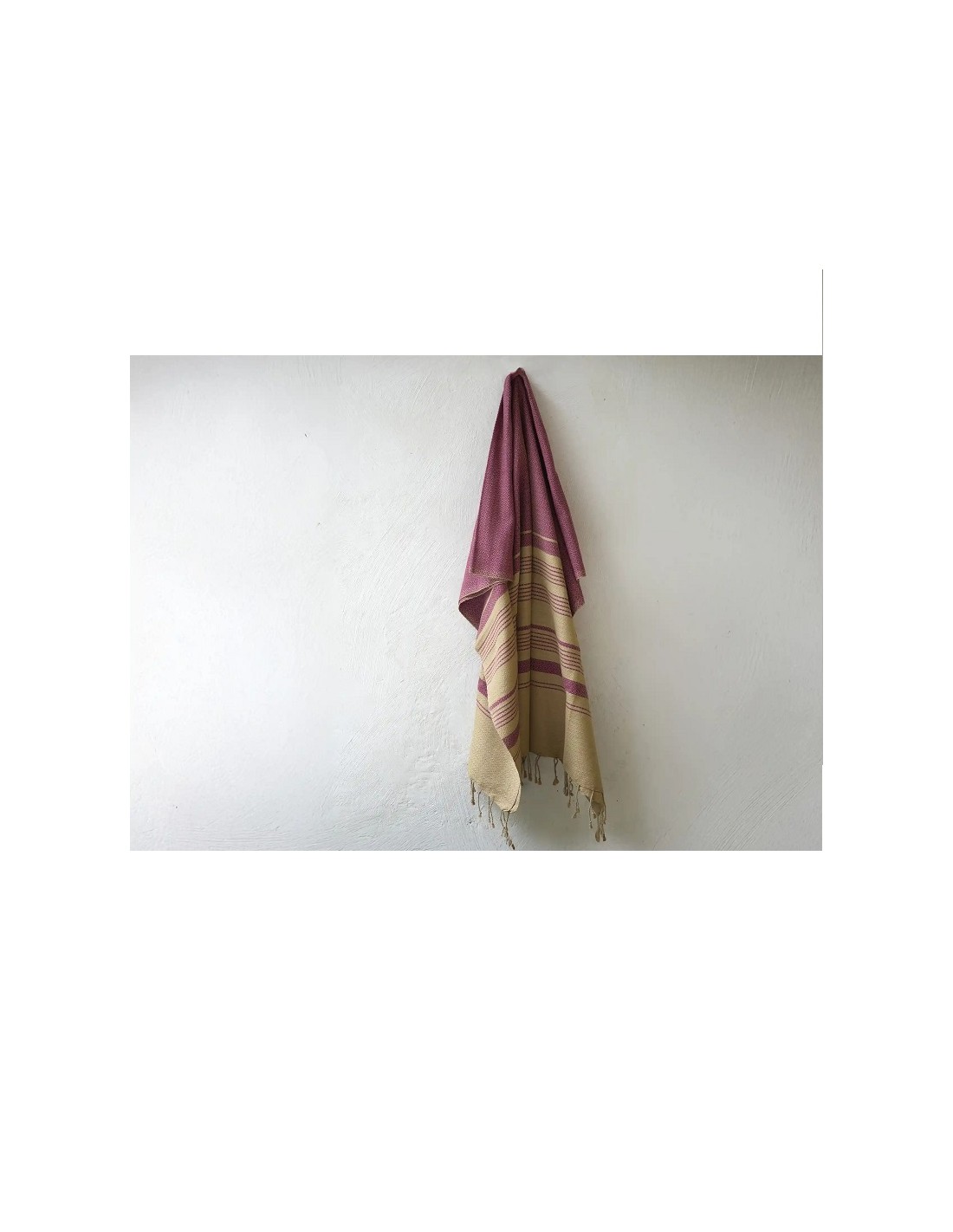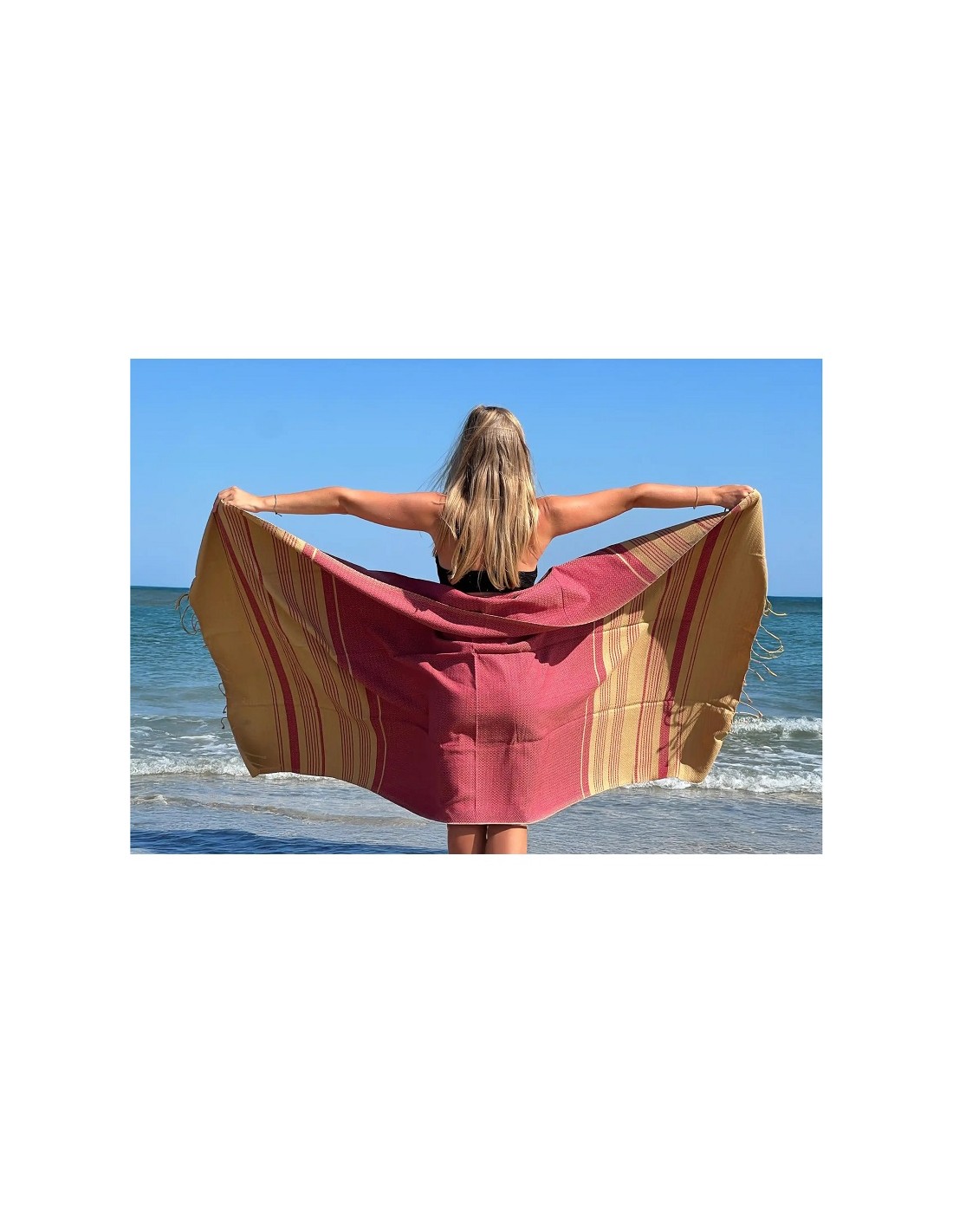 La fouta coton bio sand sable ocre rouge Karawan Authentic est une fouta que vous pourrez facilement emporter pour aller au Hammam, voyager, l'utiliser en plaid, en paréo,... L'objet essentiel des vacances !
