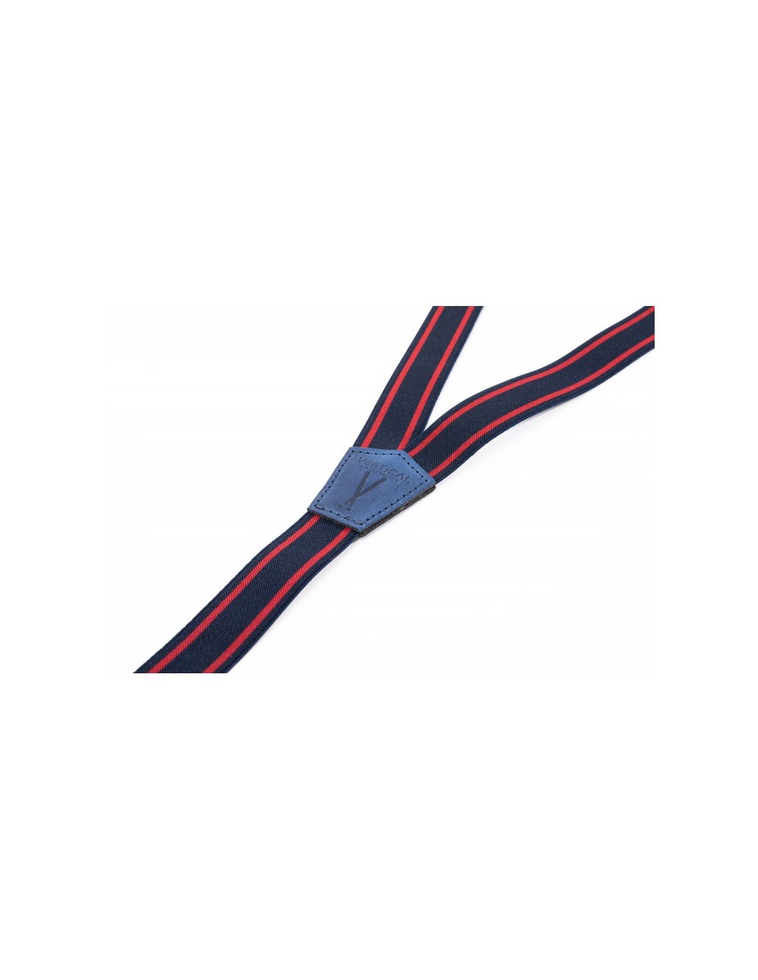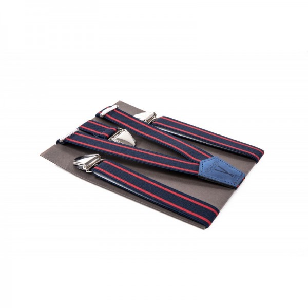 Une paire de bretelles qui ne vous lâchera pas ! Les bretelles sont bleues et bordeaux, mixtes, mi-larges et fabriquées en France.