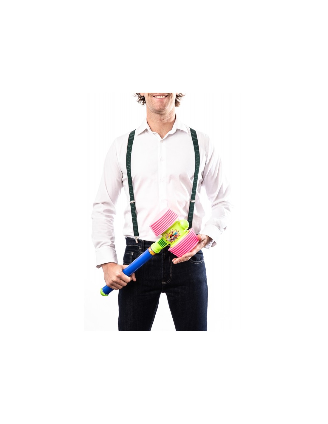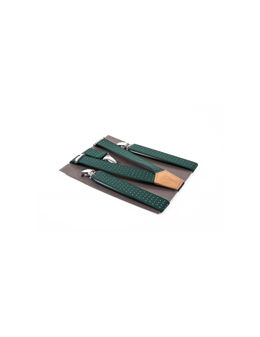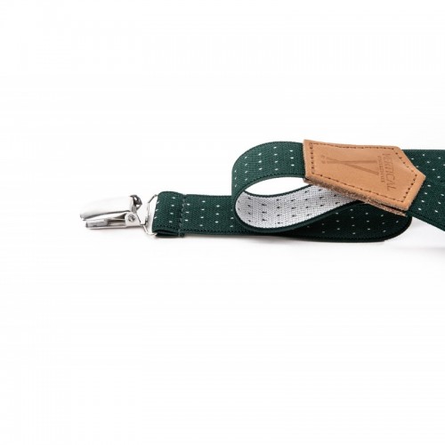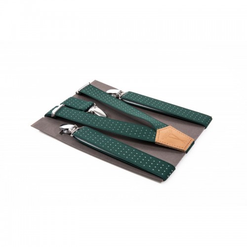 Bretelles mi-larges, mixte, de coloris vertes à points blancs, fabriquées en France, pour un look tendance et décalé !