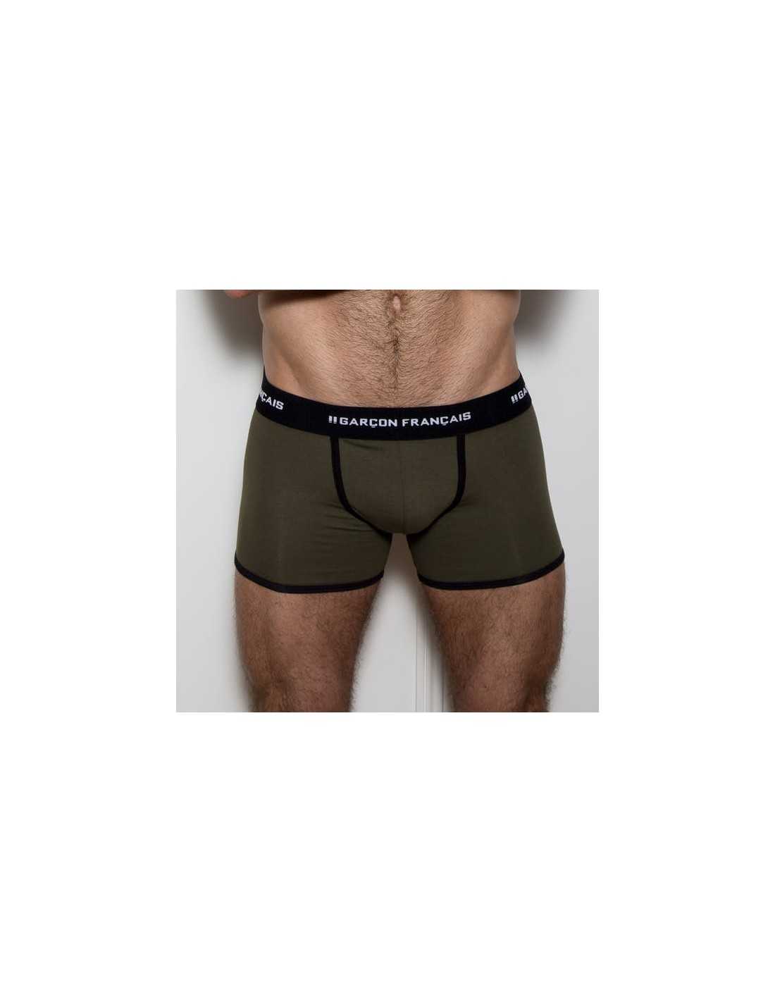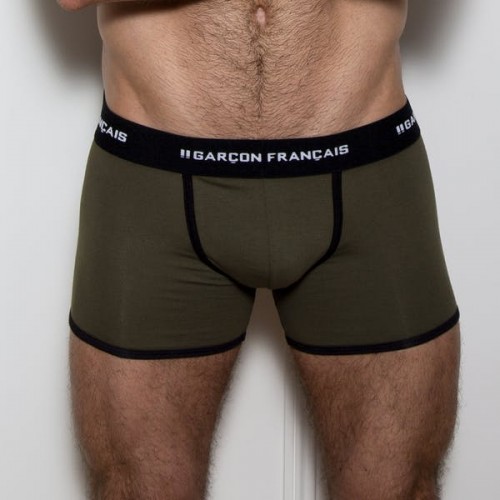 Boxer long homme vert kaki, taille basse, coupe ajustée, certifié Oeko-Tex.