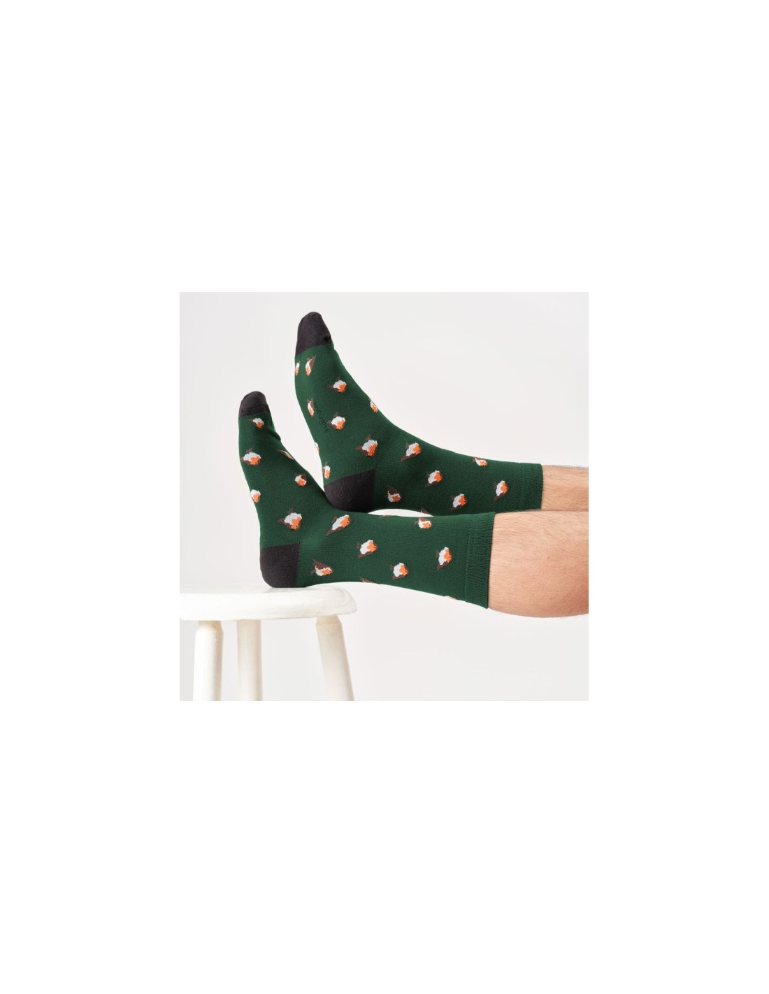 Ce cône surprise noël 1 paire de chaussettes homme Thought, est composé d'une paire de chaussettes vert sapin avec des rouges-gorges.