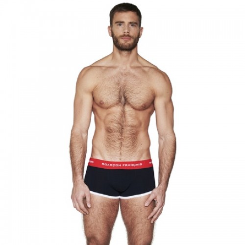 Boxer homme tricolore fabriqué à partir d'un tissu de qualité (210gr/m²), en maille Jersey (93%) de coton biologique (certifié GOTS), et 7% d'élasthanne.