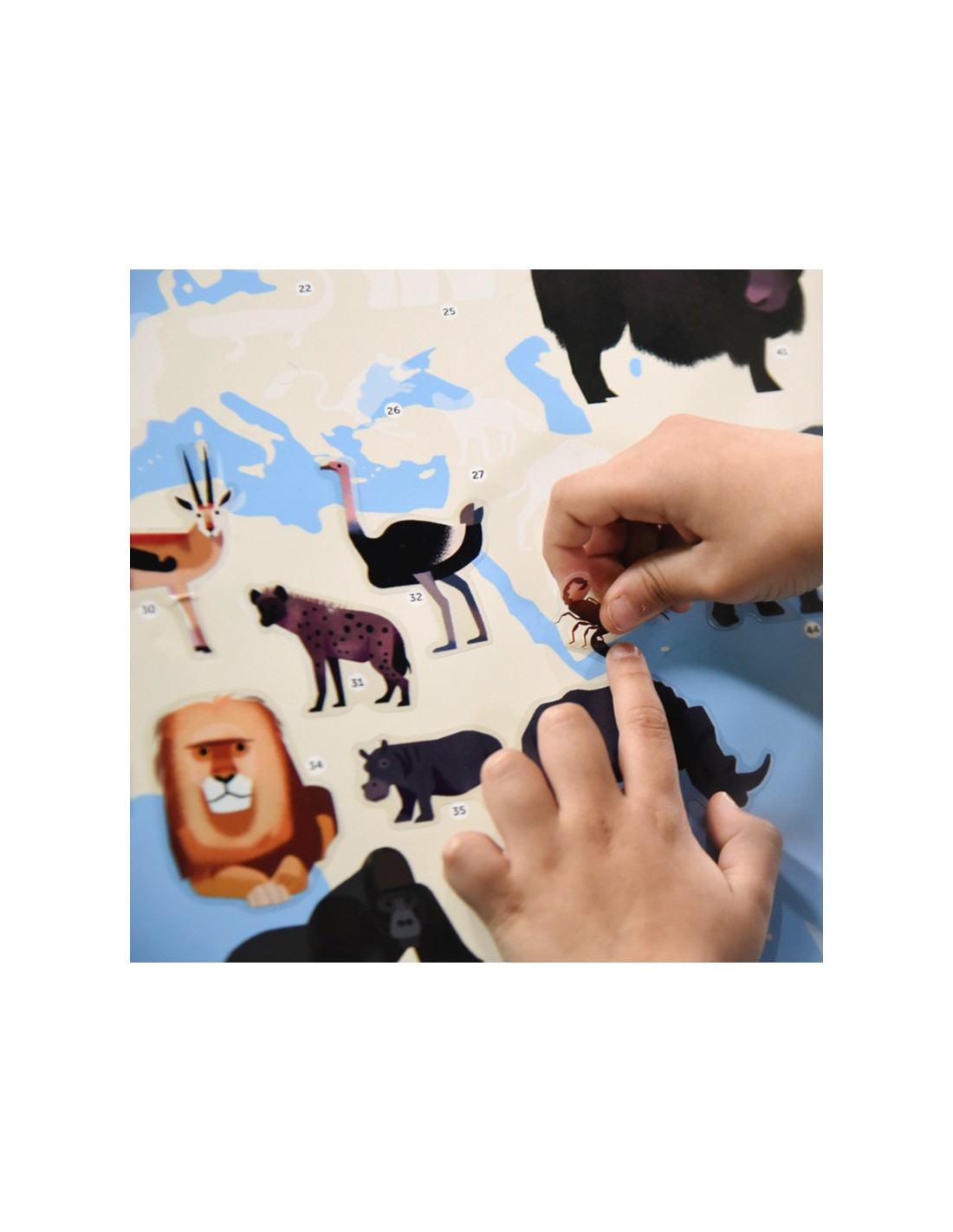 Avec ce poster, les enfants se passionnent pour les animaux. Ils collent les stickers sur la carte du monde, et découvrent les animaux emblématiques de tous les continents.