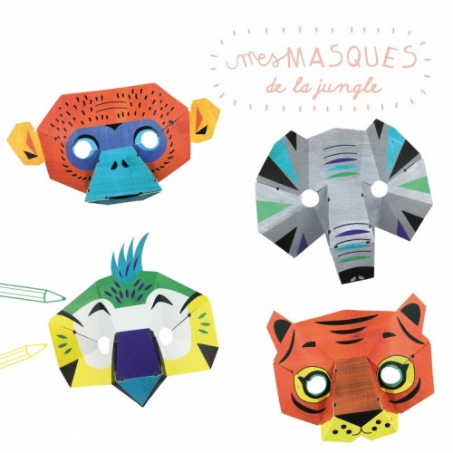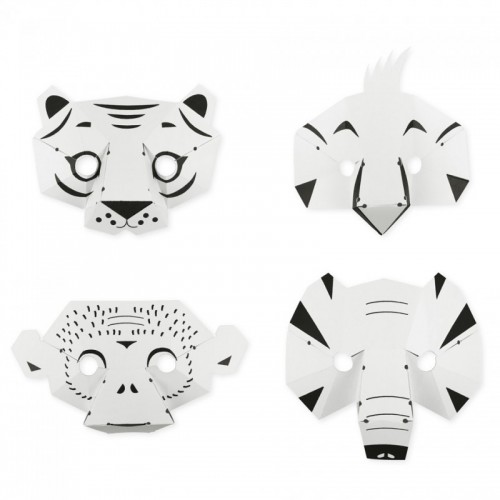 Une activité manuelle réjouissante : 4 masques en papier à fabriquer en 3d et à colorier. Es tu plutôt singe, perroquet, tigre ou éléphant ?