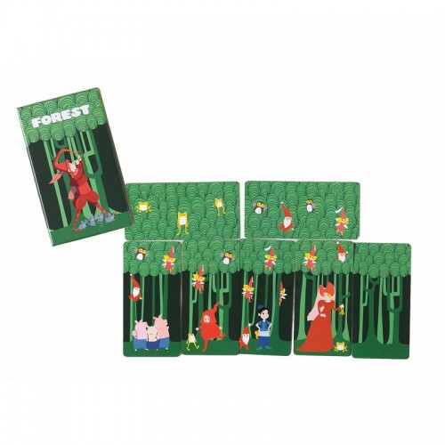 Règle du jeu : Avec leurs cartes, les joueurs forment une forêt infinie où se cachent des créatures mythiques. Dès que sept créatures identiques apparaissent sur les cartes, soyez le premier à vous en emparer. Le joueur avec le plus de cartes à la fin de la partie a gagné !